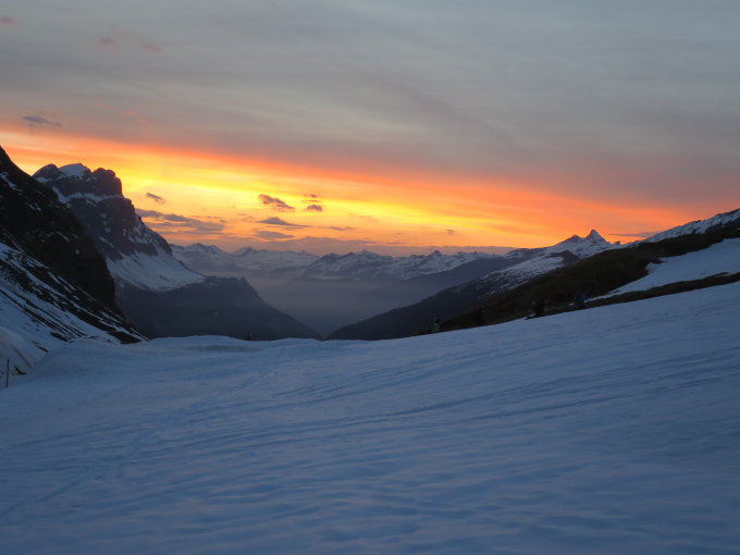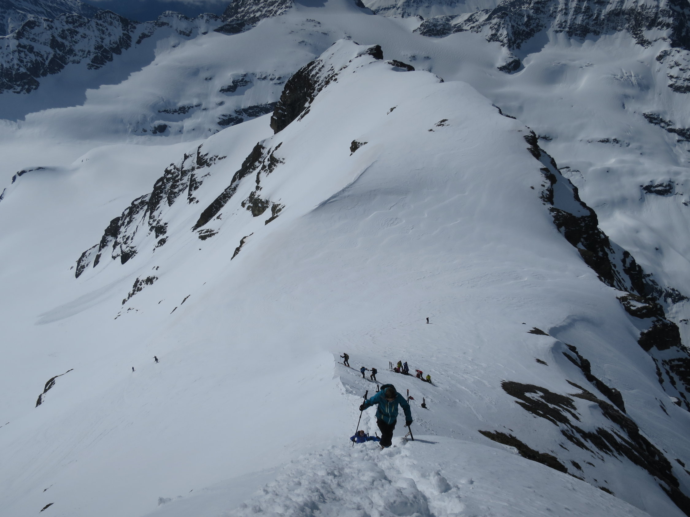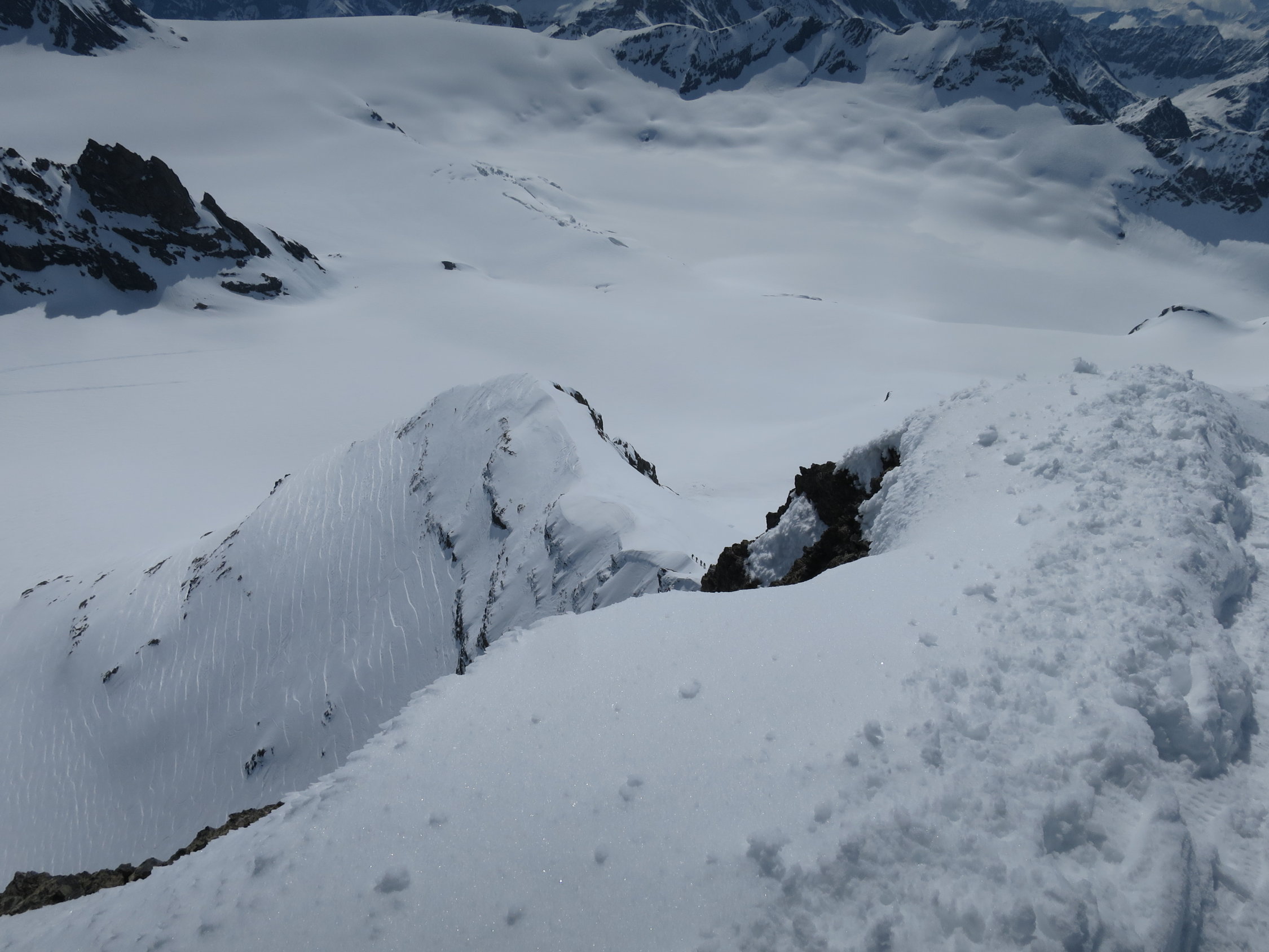 Noch viel Schnee im Gebiet, wenn er noch ein paarmal gefrieren könnte, wird es richtig gut. Die Schärhorn Nordabfahrt nach Chammli, zurzeit nicht empfehlenswert. Besser wäre diese Tour in umgekehrten Reihenfolge.