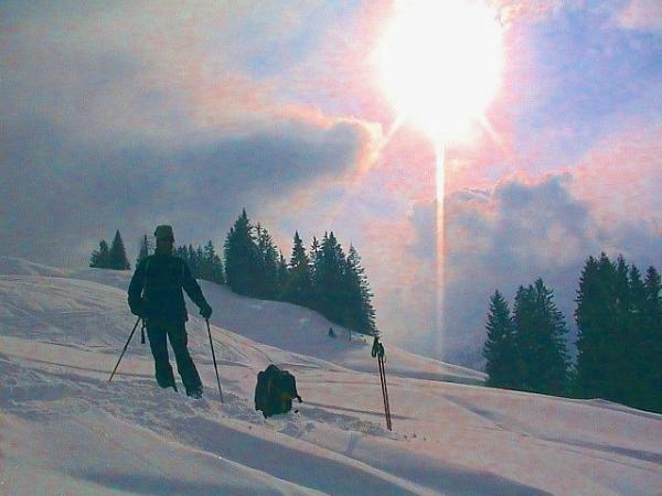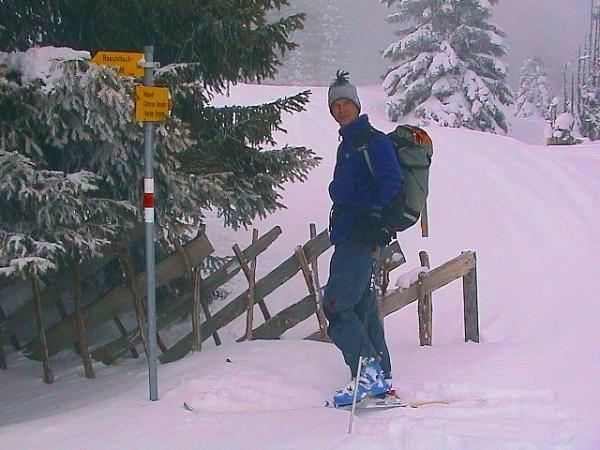 Girenspitzen gibt es fast so viel wie Mittagspitzen. Eine jedoch ist weitgehend unbekannt und in keinem Führer public gemacht. Sie vermittelt aber eine prachtvolle, ergiebige Skitour über fast 1300 Höhenmeter. Zunächst gilt es die Häuser von Strahlegg und den Start der Tour zu finden. Das ist nur mit der excellent gezeichneten Schweizer Landeskarte möglich. Heute, bei Neuschnee, müssen wir selbst spuren. Daher brauchen wir etwas Pfadfindergeist, sowie immer wieder den scharfen Blick auf unsere Karte. Eine steile Waldschneise bringt uns in etwas flacheres, schön kuppiertes Gelände, bei den Häusern von Raschitsch. Im weiteren Verlauf durch schöne Waldlichtungen und schliesslich im freien Gelände bis auf 2055 m Seehöhe. Dort, 130 m unterhalb des Gipfels, sind wir umgekehrt. Schlechte Sicht, Triebschnee, Wummgeräusche und Anrisse in der Schneedecke waren die Gefahrenzeichen. Diese fordern nach "Stop or Go", dem vorbildlichen Risikomanagement des Alpenvereins, den Abbruch der Tour. Wir haben "Stop or Go" gelernt und versuchen uns daran zu halten. Sicherheit geht vor und der Weg ist doch, neben dem Gipfel, auch das Ziel.