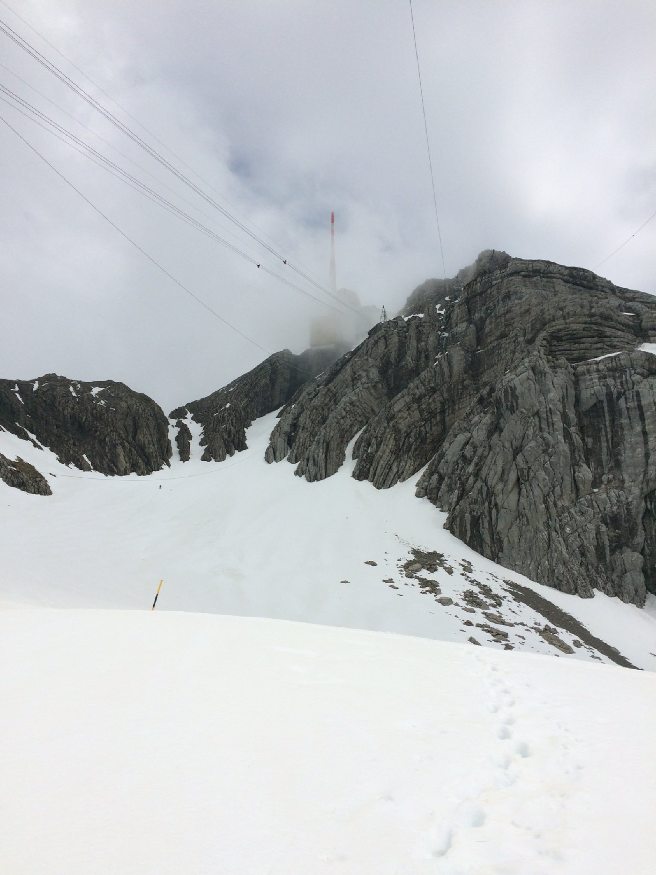 Zwischen der Tierwies und dem Säntis liegt noch viel, relativ nasser Schnee, jedoch gut begehbar.