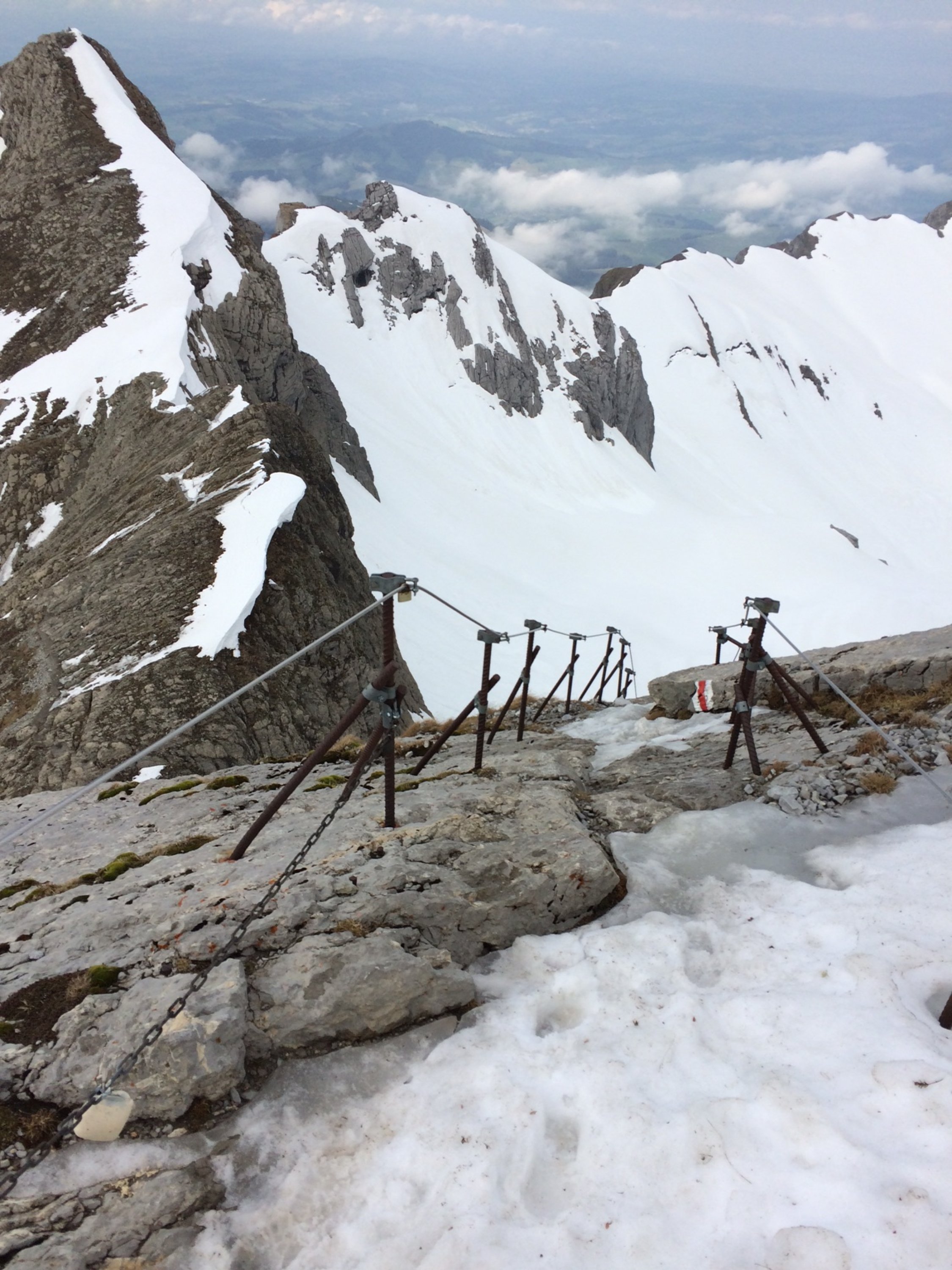 Es hat noch reichlich Schnee vor allem unterhalb der Tierwies. Ohne Steigeisen ist es gar nicht empfehlenswert. Gemäss Hüttenwart wollen sie den Wanderweg von der Schwägalp bis Tierwies ab dem 02.06.2016 freischaufeln.
