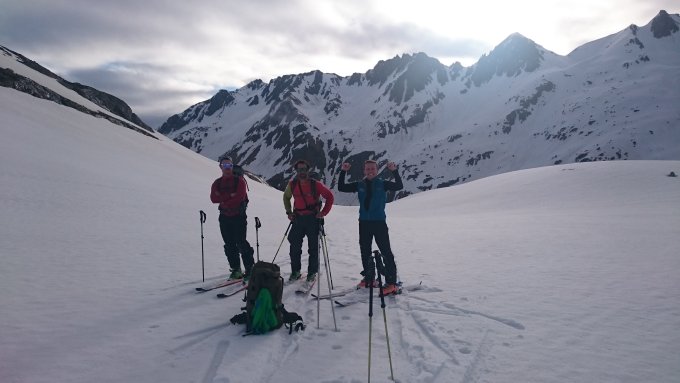 Die Ostflanke zum Leckipass hat noch relativ viel Schnee; der Grat zum Gipfel ebenfalls. Hier konnten wir in der Nordwestflanke bis ca. 25m unter dem Gipfel hochspuren; der Rest ging sehr gut zu Fuß.