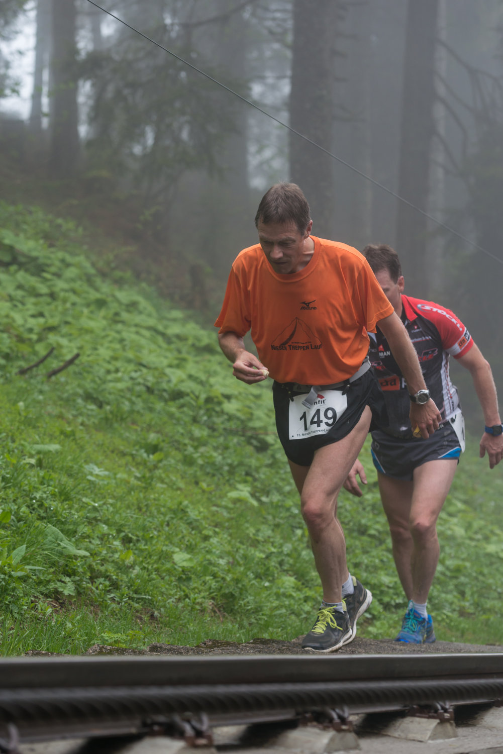 Perfekte Laufverhältnisse und während des laufes trocken! So gerade wie möglich den 11674 Stufen hinaufgelaufen und dann weiter über den Gipfelwanderweg zum höchsten Punkt.