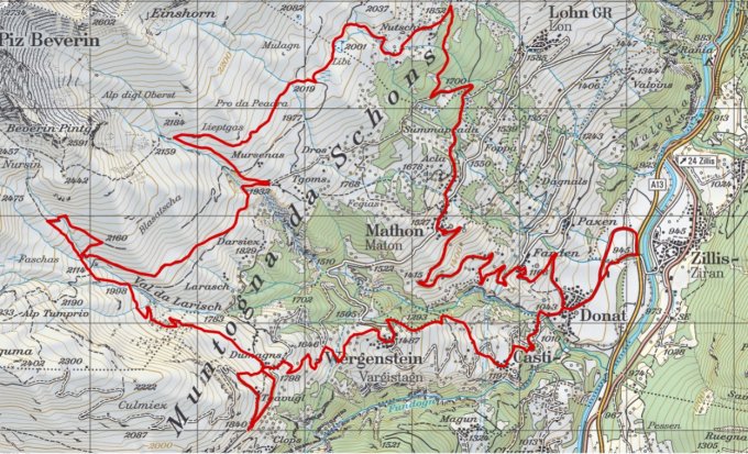 Piz Beverin war den ganzen Tag in Wolken. Schneefrei bis 2300 müM ... nicht so nass wie erwartet.
