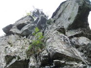 Schöner Steig in abgelegener Gegend. Genußvolle Reibungskletterei auf bombenfestem Granit ohne künstliche Tritt- u. Griffhilfen (außer das Sicherungsseil). Die Klettersteigroute ist neu (vorbildlich) abgesichert. Griffiger, schnell trocknender Granit, selbst unkritisch nach einer heftigen Regennacht.