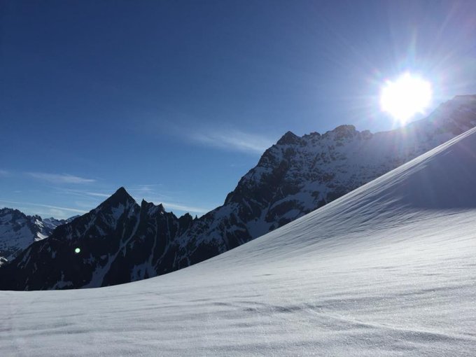 Super Verhältnisse im ganzen Gebiet. Start beim Steisee. Die Strasse zum Umpol ist zwar schneefrei, aber durch ein Armeejeep versperrt.