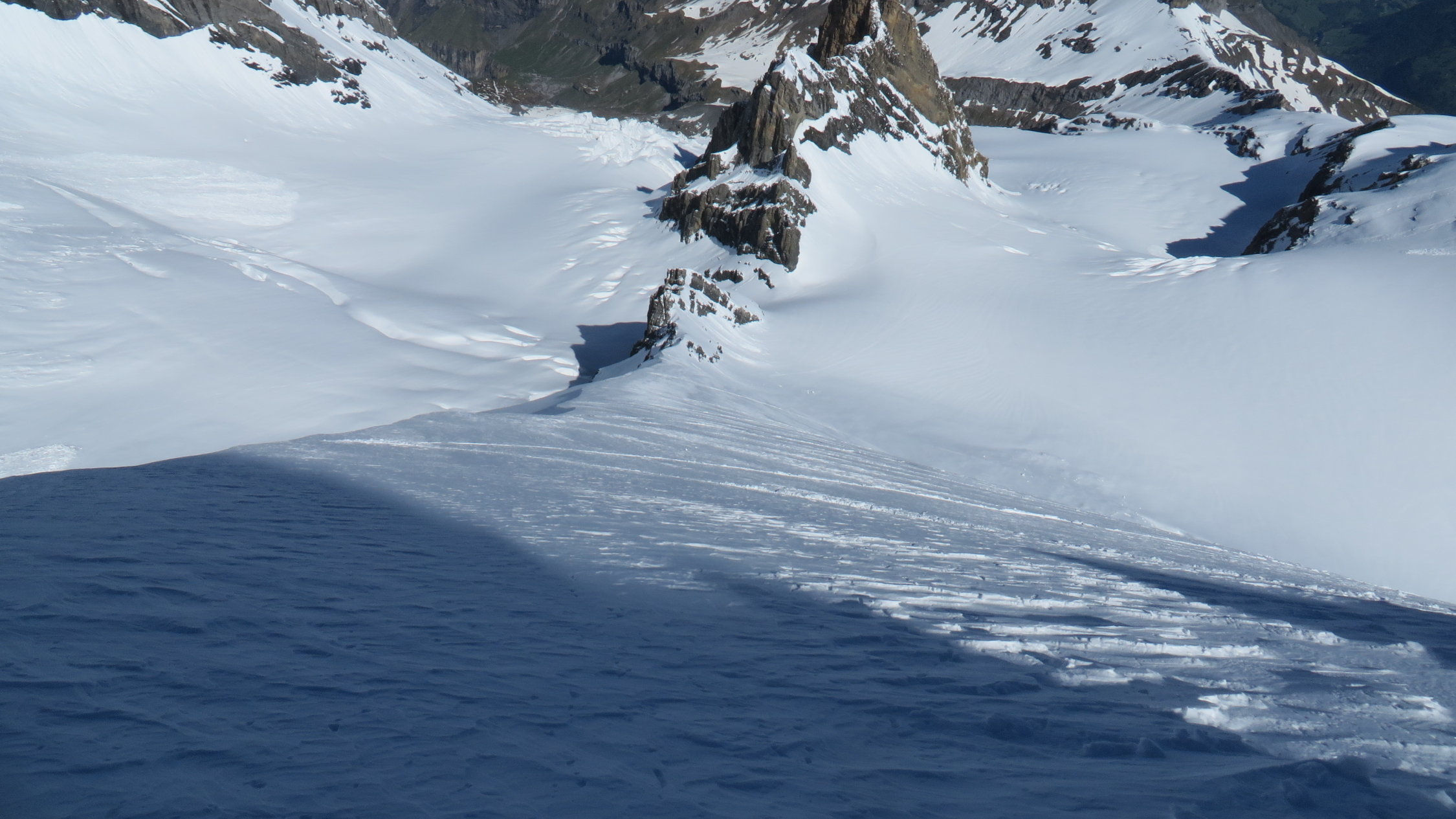 1900m-2400m im aufstieg Büsserschnee mit ausgeprägter Struktur nach so viel regen der sich aber nach 11 Uhr in der abfahrt gut fahren liess.