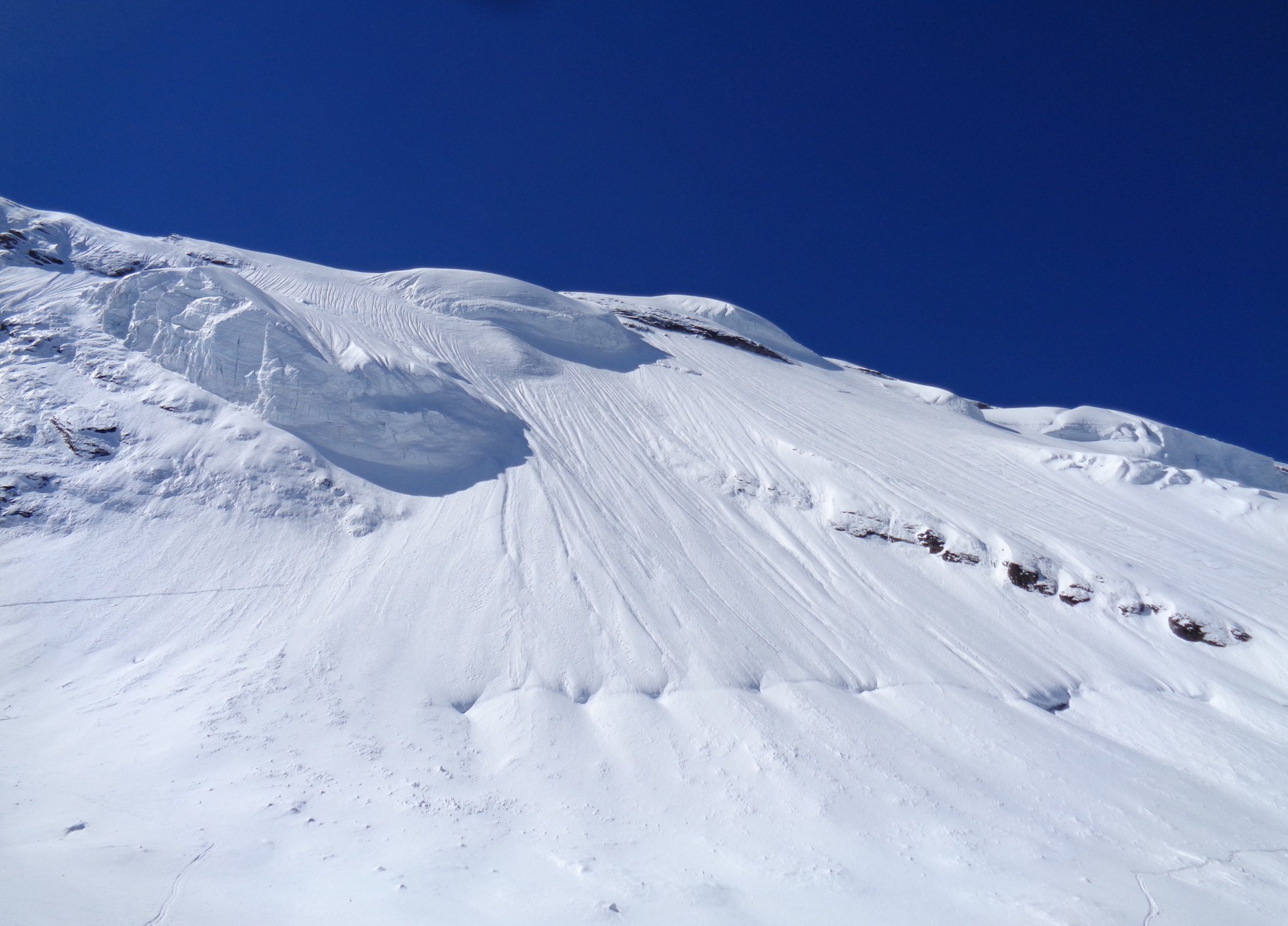 Sluff in der Wand, Lockerschneelawinen aus sonnenexponierten Hängen oberhalb 3000m