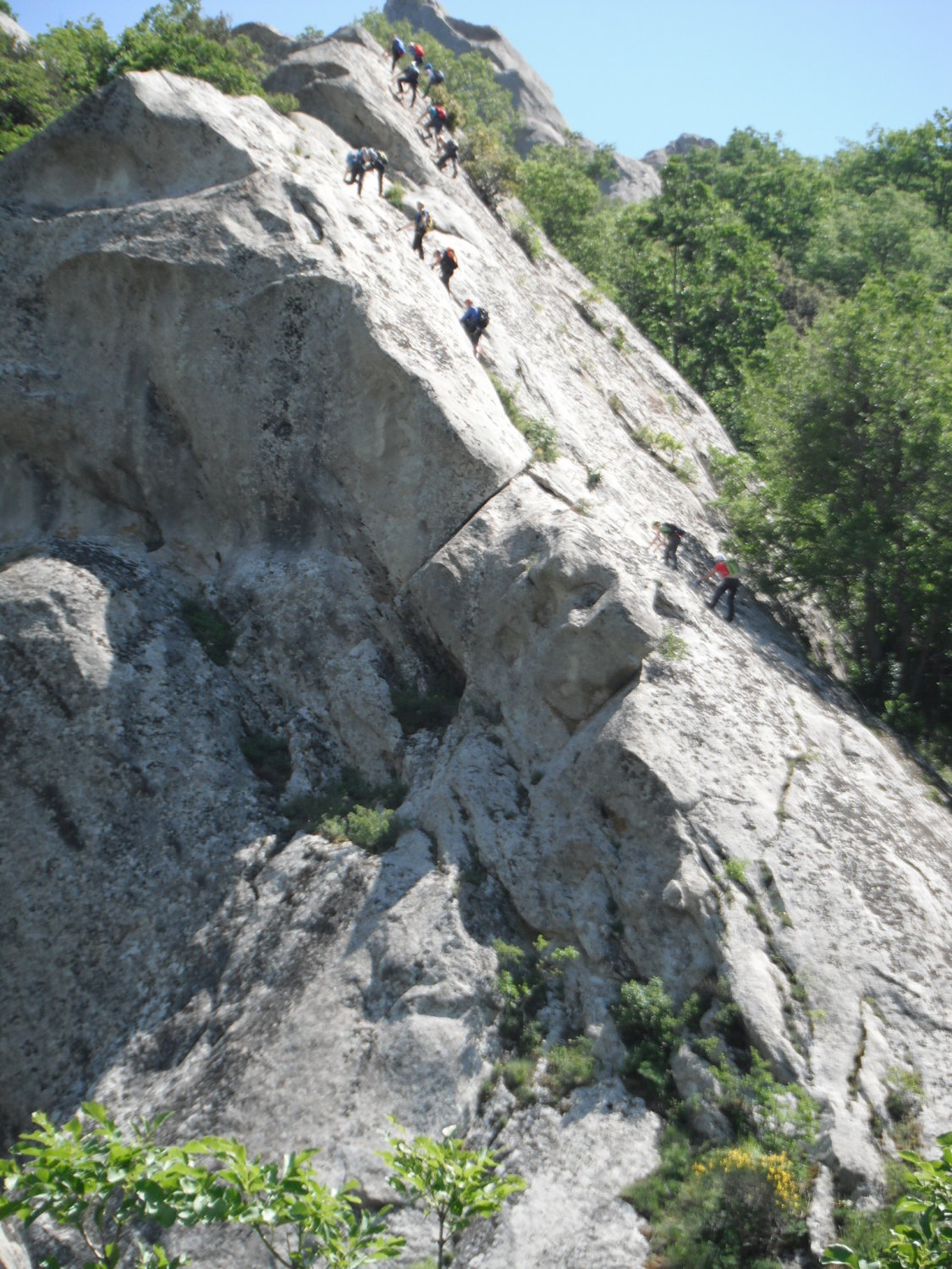 Tourenbeginn um 12:00 Uhr. Wolkenlos. Morgensonne. Kein Wind. Eine größere Klettergruppe getroffen (13 Leute)