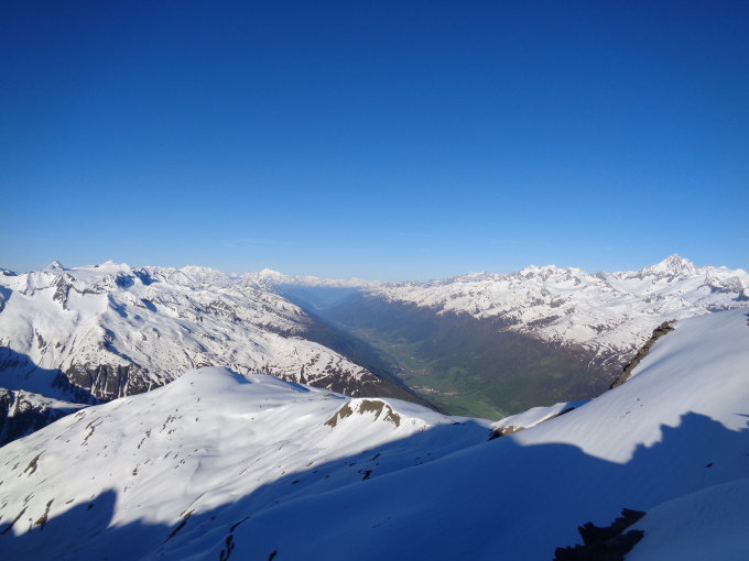 Für die Jahreszeit noch sehr viel Schnee am Muttenhorn. Vom Start bis zum Gipfel mehr als ausreichend.