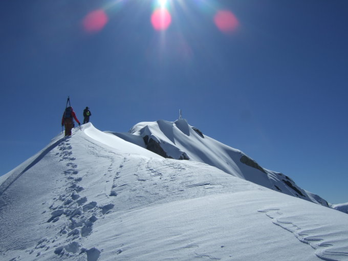 Und dann wurde ich noch Zeuge einer Skiabfahrt vom Gipfel. Ideen hat der Mensch...