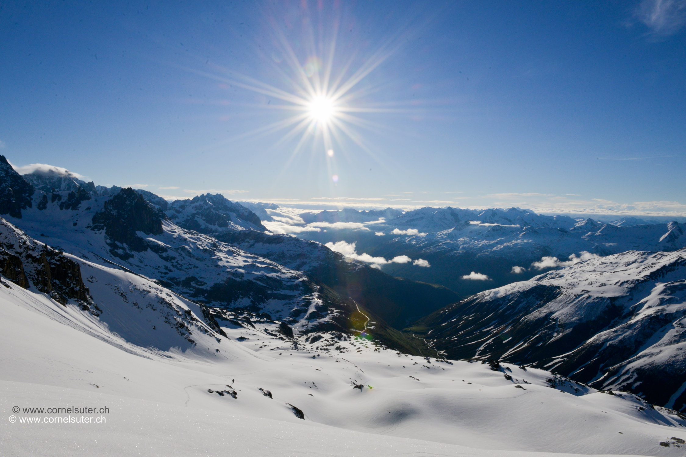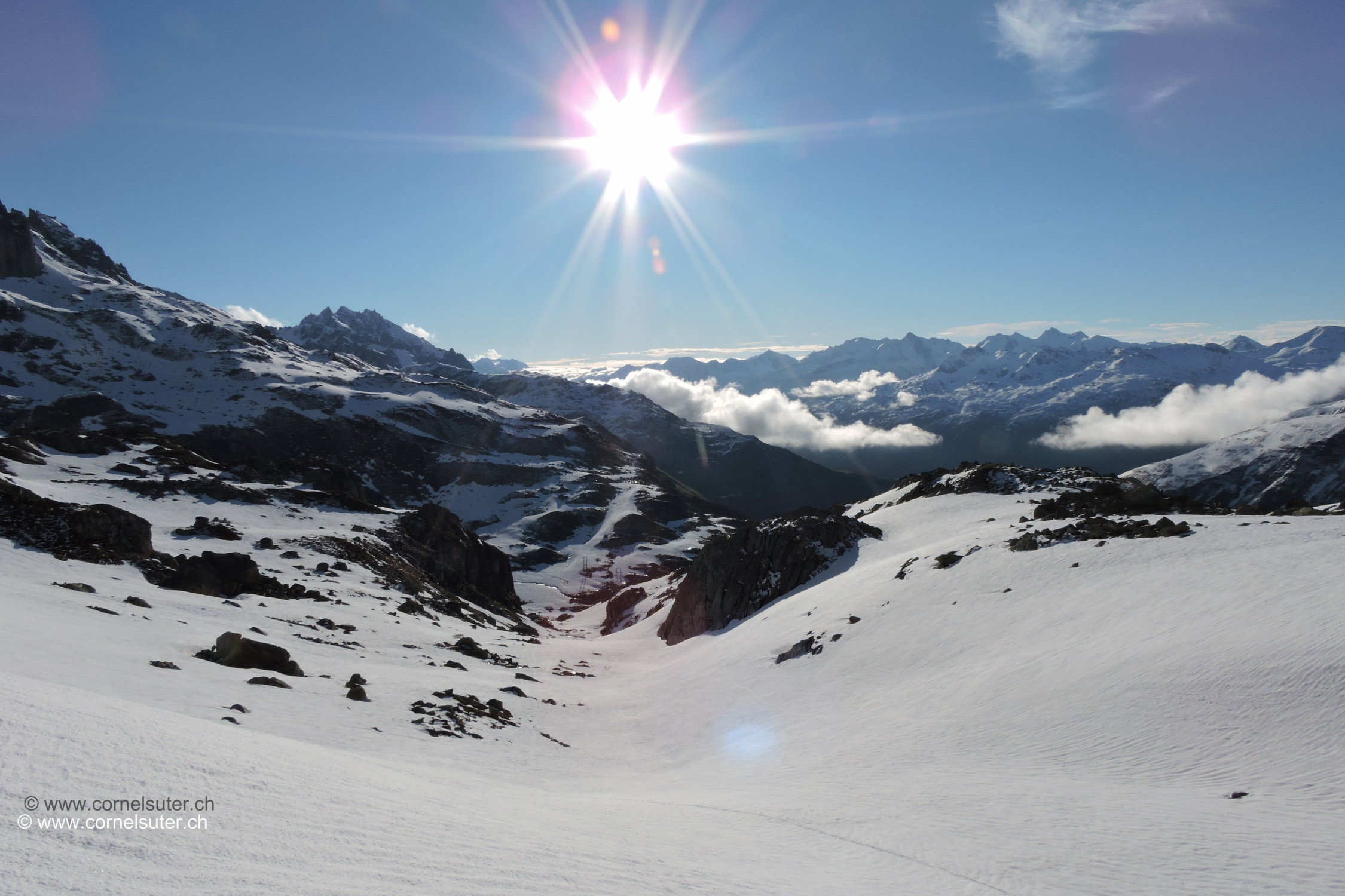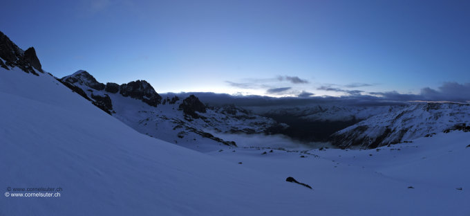 Abfahrt anfangs noch fast tragender Deckel, ab 2840m brechender Deckel, daher grosse Bögen gemacht in der Mulde Sidelenbach – Galenloch, im Style von einer über Dimensionierten grossen Halfpipe….