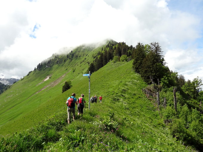 Auf dem Gipfel setzte leichter Regen ein der mit der Zeit zunahm und uns zwang ins Aarhölzli einzutreten was uns bestimmt nicht schadete, eher das Gegenteil. Nach kurzer Pause war der Spuk vorbei und es blieb trocken.