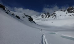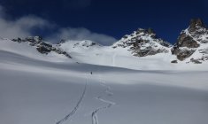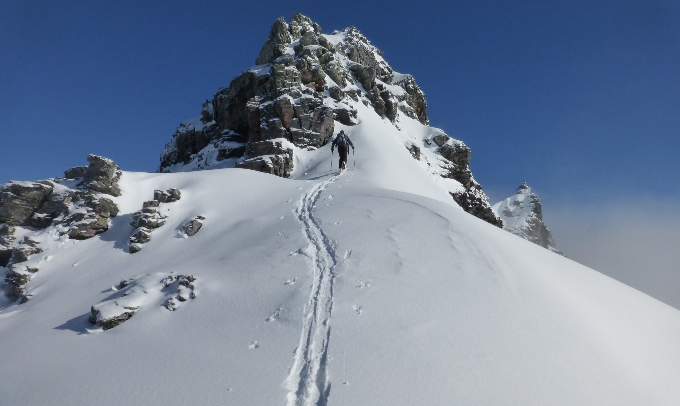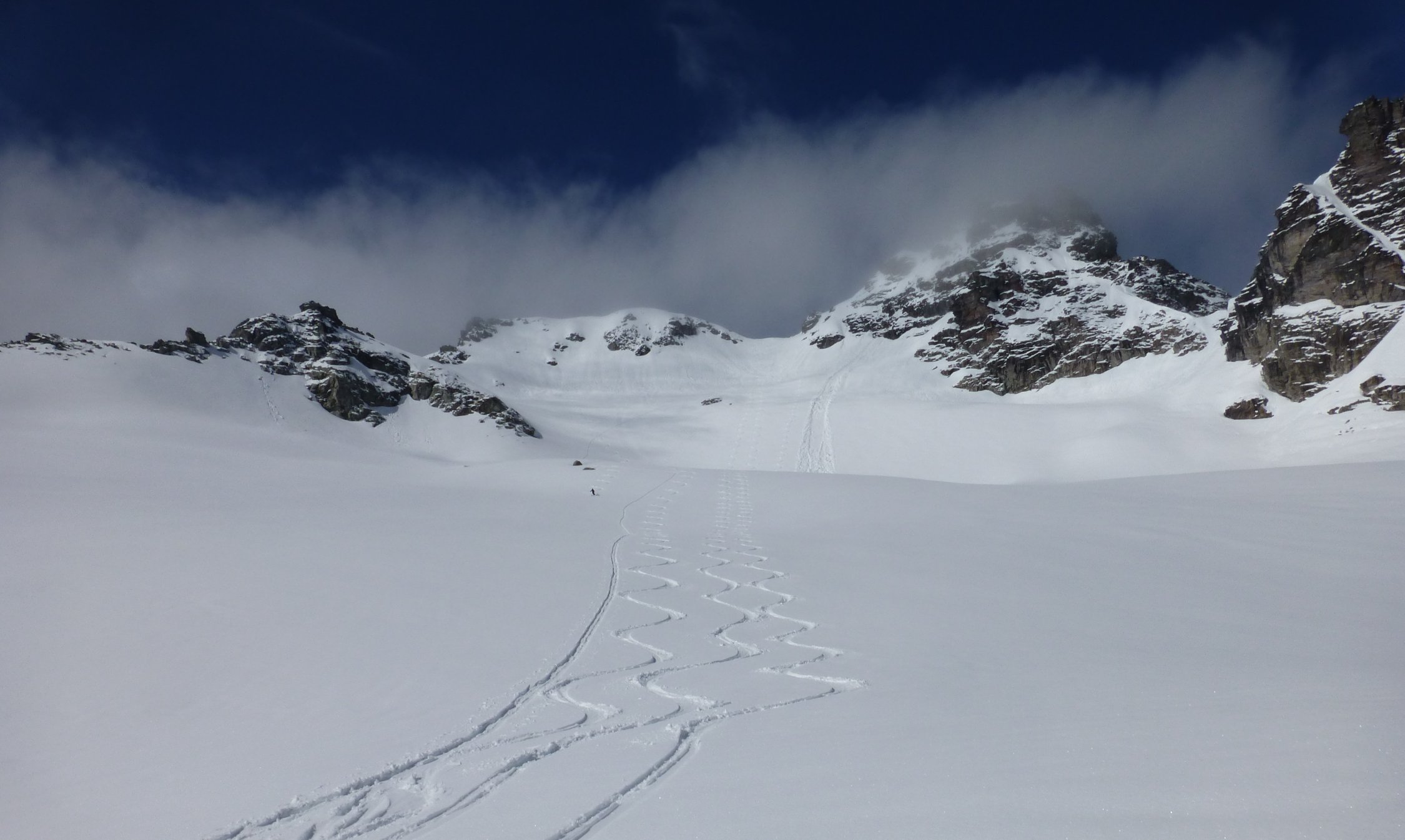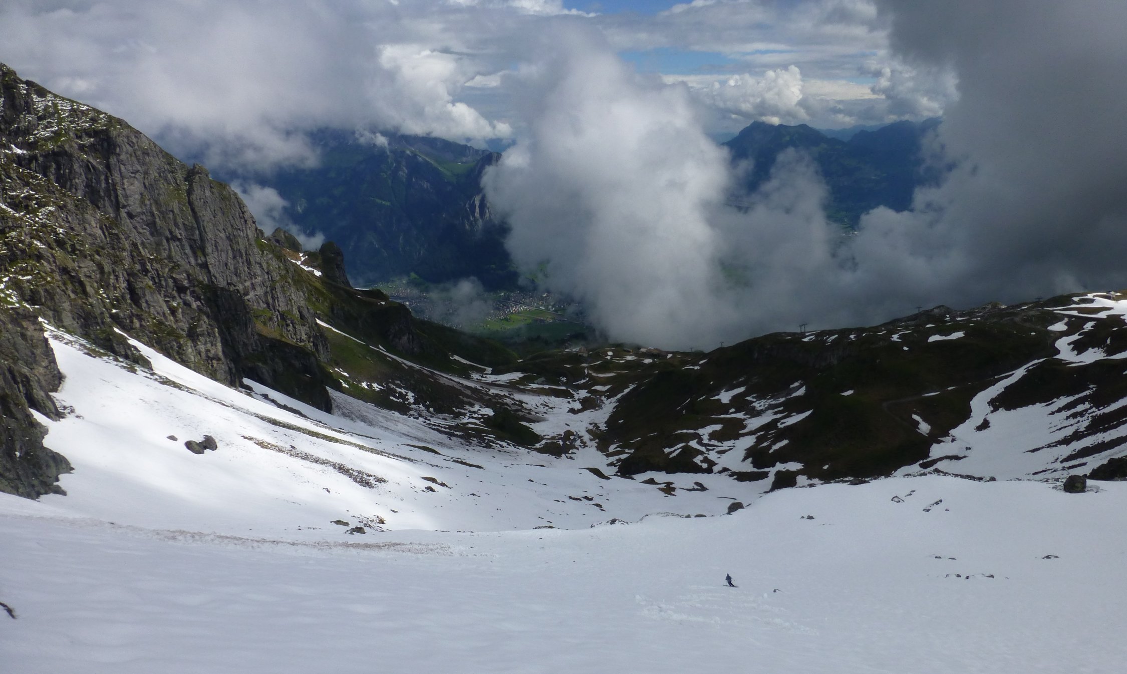 Ab Furt mit dem Bike bis Gaffia 1861 müM. Ab dem Täli eine geschlossene Schneedecke bis zum Gipfel.
