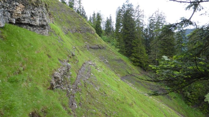 Wetterbedingt war es sehr nass und auch rutschig. Gerade die weglosen Passagen bedingen gutes Schuhwerk (wasserabweisend, griffige Sohlen). Der Grat von der Sattelspitz zum Alpkopf ist einfacher als angenommen. Der klippige Felsaufschwung wird westseitig in steiler Flanke umgangen. Der Abstieg von der Mörzelspitze über den Laubachgrat erfordert - gerade bei Nässe - volle Konzentration.