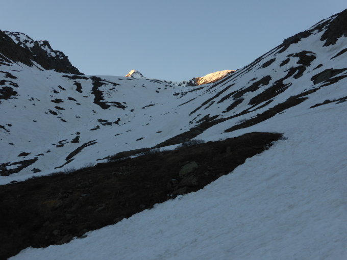 Mangels Schnee bei der Strasse(Oberstafel 2046m) mit dem Auto noch zwei Kurven weiter hinauf und dann den Feldweg zur Station Muttbach/Belvedere beim Furkatunnel 2118m. Ab hier bei entsprechender Routenwahl fast durchgehend(nur ein paar Meter) eine Schneedecke vorhanden. Ab ca.2250m immer noch sehr gute Verhältnisse(siehe Fotos). Skis auf den Gipfel zu tragen ist nicht mehr lohnend, da viele Nassschneerutsche. Insgesammt aber für diese Jahreszeit noch super Bedingungen.