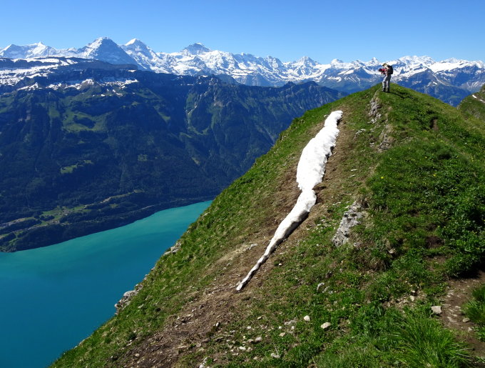 Lombachalp ist ein Mountainbiker Treff mit vielen Möglichkeiten. Da es sich um einen Naturschutzgebiet nationalere Bedeutung handelt, gelten strenge Regeln. Dies hindert scheinbar nicht ein Fachheft eine Route zu empfehlen, die grossen Tragstrecken hat und teilweise enorm (für Velofahrer) ausgesetzt ist. Dies weiss auch der Wildhüter der die Helden auf der Brienzerseite in Empfang nimmt und ihnen eine schöne Rechnung präsentiert.