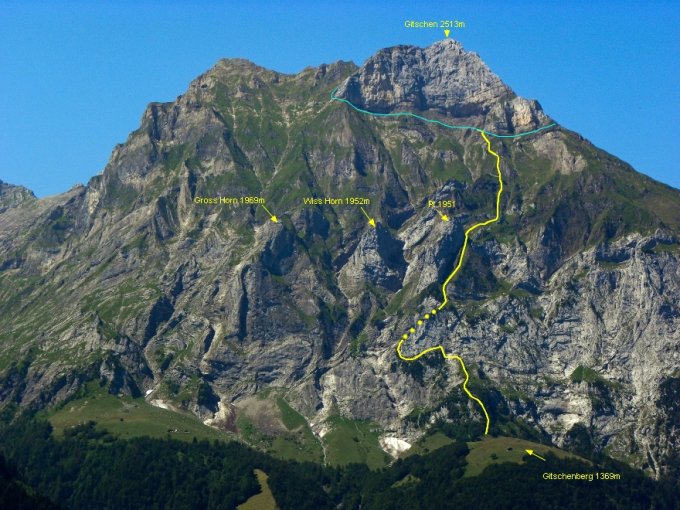 Gitschen (2513m): Via Ostflanke, ab Gitschenberg 1368m