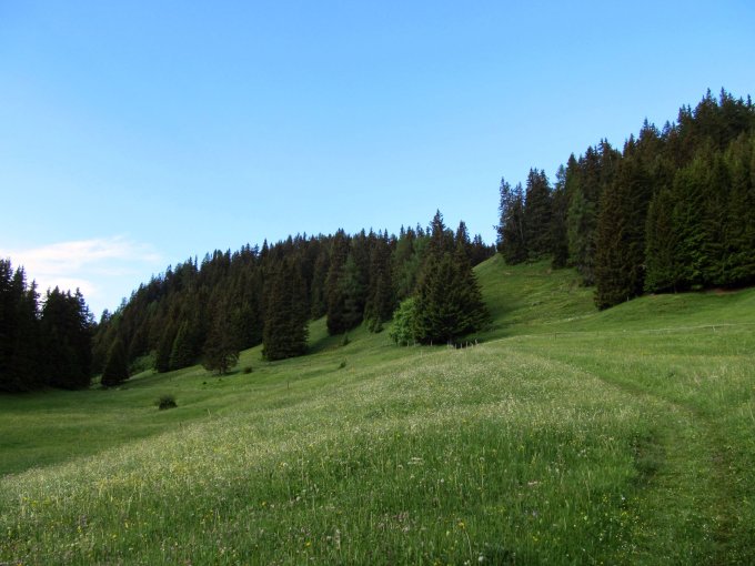Exakt zu unserer Ankunft zog eine Schlechtwetterfront ab und wir konnten ca. 3 1/2 Std. die Sonne genießen. Von Beginn weg schwülwarm, oben mit leichter Brise dann angenehm. Wege teilweise noch nass aber gut begehbar.