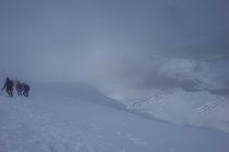 Winterlich, viel Schnee im Grat und im Abstieg, Nebel am Gipfel