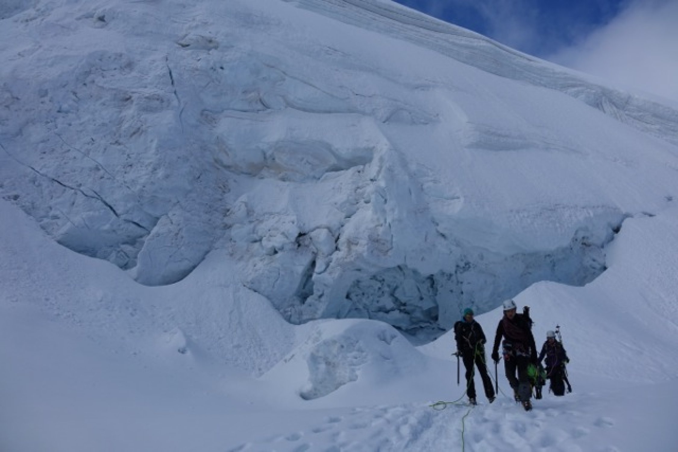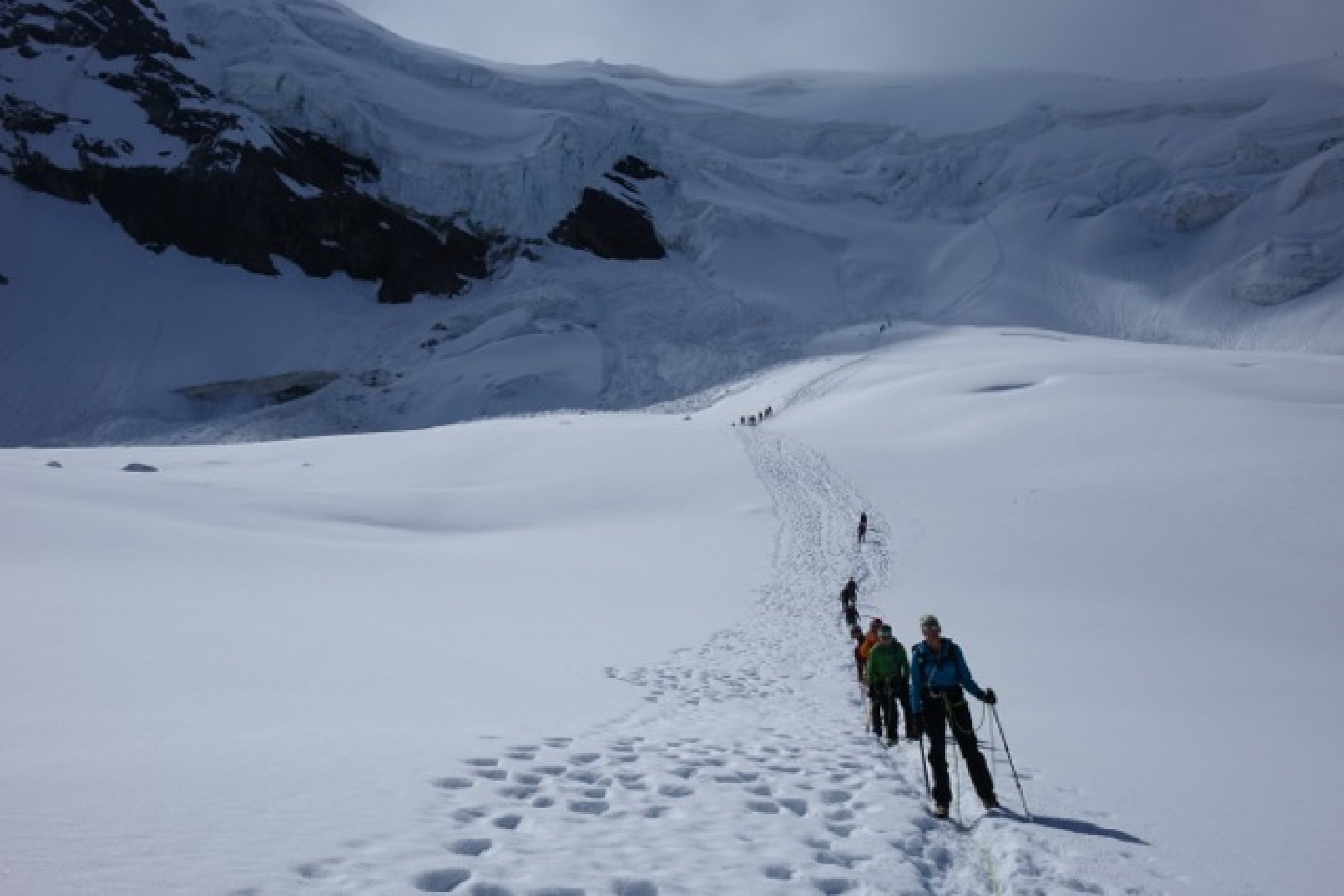 Gute Spurenlage im Gletschebruch der NW Flanke