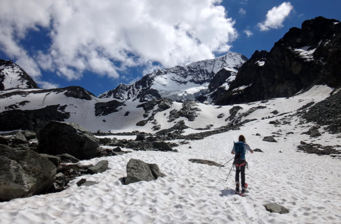 Schnee ab 2500m (Arolla liegt bei 2000m, d.h. eine ziemlich Angenehme Tragestrecke für ende Juni). Hütte fast leer (unter 20 Leuten). Schnee morgens teils hart, die erste Steilhang direkt über die Hütte haben wir zu fuss gemacht. Nachher angefellt und sehr schnell auf die Gipfel. Dort ~1 Stunde gewartet bit die Schnee von die Sonne ein wenig eingeweicht war. Super timing. Oben ein wenig hart, in die mitte perfekt, unten weich. Wir waren schon um 11:45 in Arolla... dann leider 3 Stunden auf die Naechste Postauto gewartet.