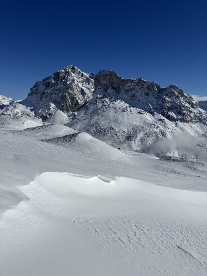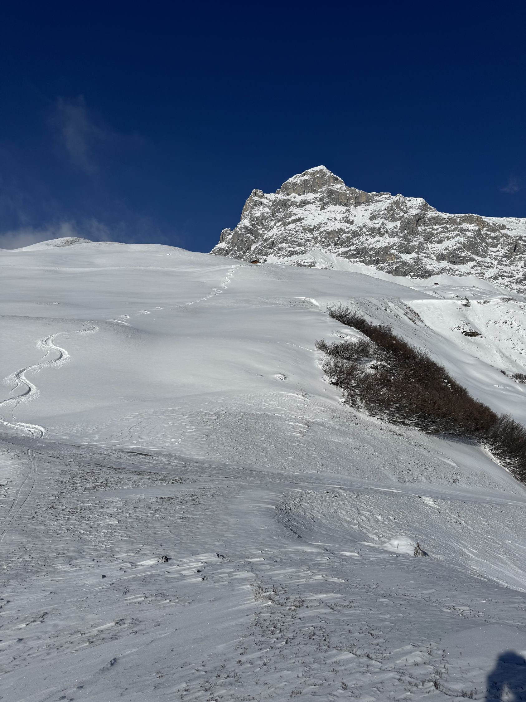 Wenig Schnee viele Verwehungen in den Wiesen fahrbar. Teilweise schöne Pulverhänge.