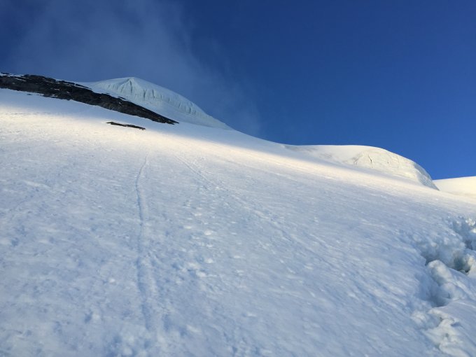 Der Zustieg von der Hütte an den Wandfuss war im Gegensatz zum Vortag nicht tragend gefroren. Dank Leichtskis war dies jedoch kein Problem. Sowohl in der Nordwand als auch bei der anschliessenden Überschreitung zum Morgenhorn waren die Verhältnisse erstklassig.