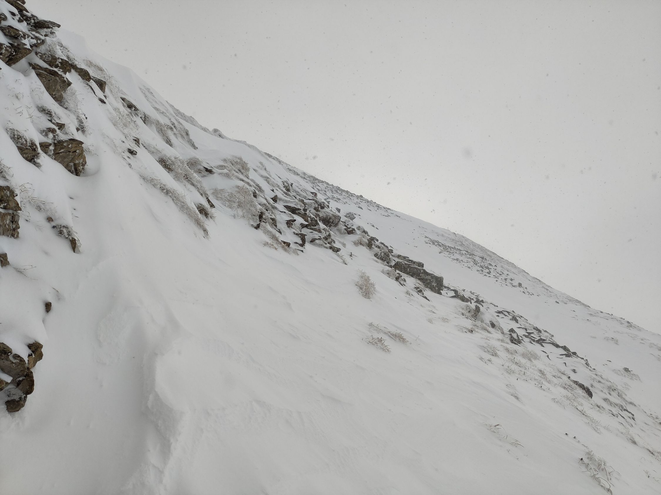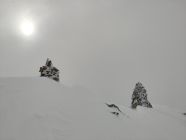 Im steilen Abschnitt (oberhalb 1900m) lag ca 20cm pulvriger Neuschnee. Selbst in den steilsten Abschnitten (ca 45°) kam es durch losgetretenen Schnee nicht zu Lockerschneelawinen.