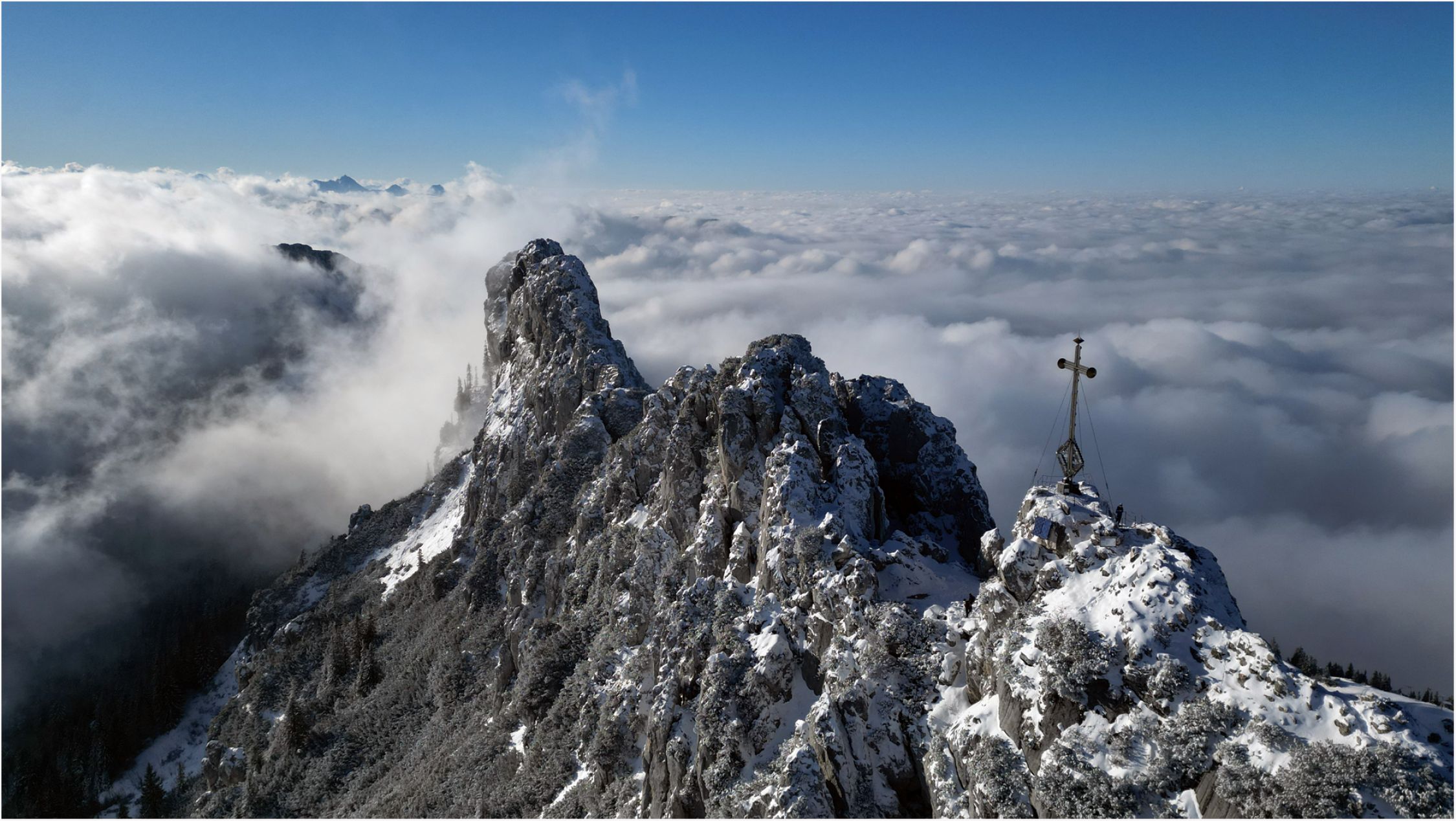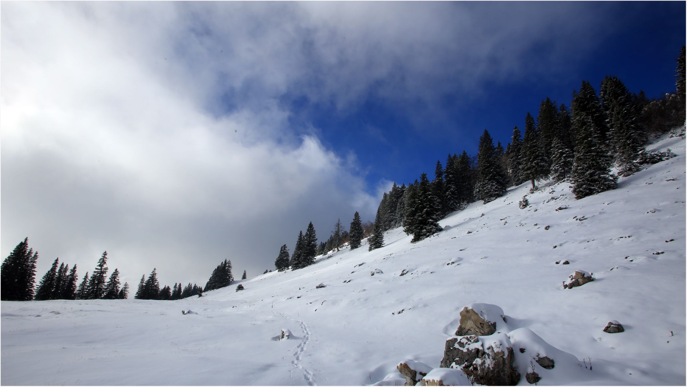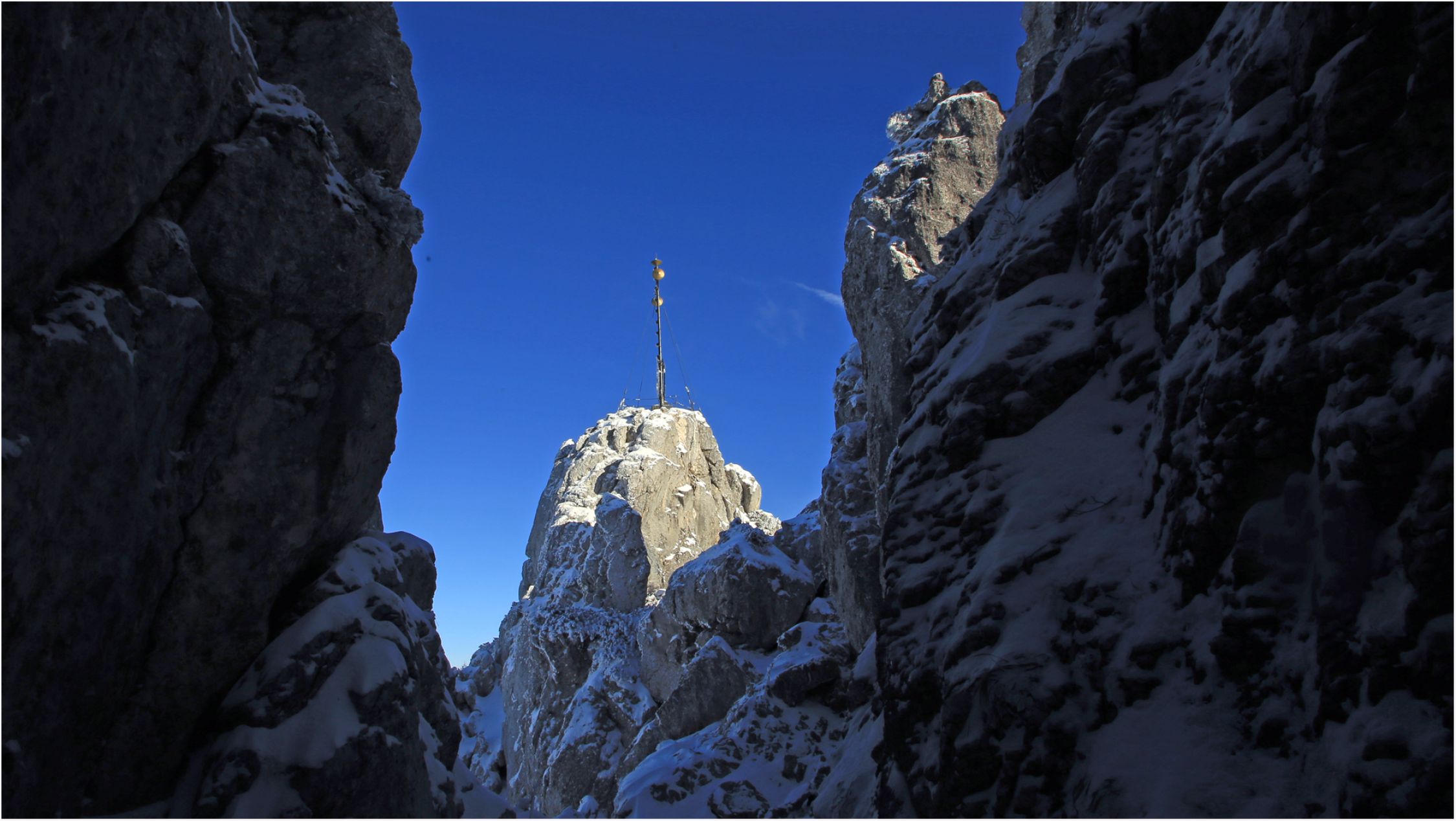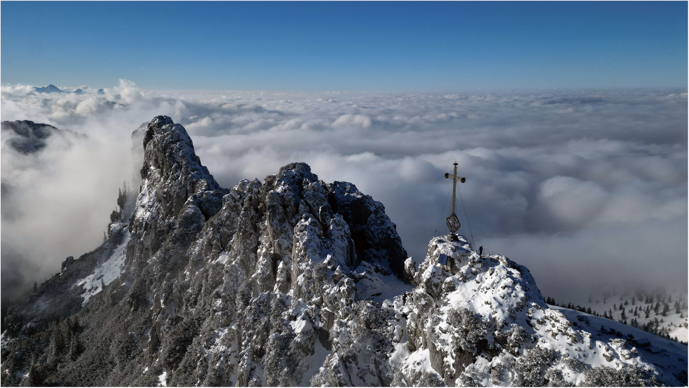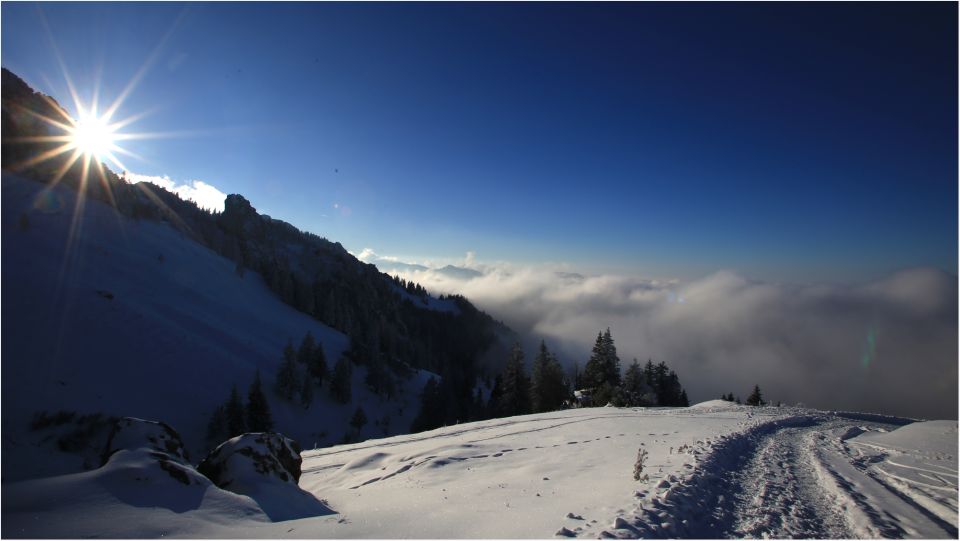 Insgesamt zum WInterwandern gute Bedingungen, Schneeschuhe werden derzeit nicht benötigt. Für den Gipfelanstieg können Grödel hilfreich sein, geht aber gut ohne.