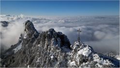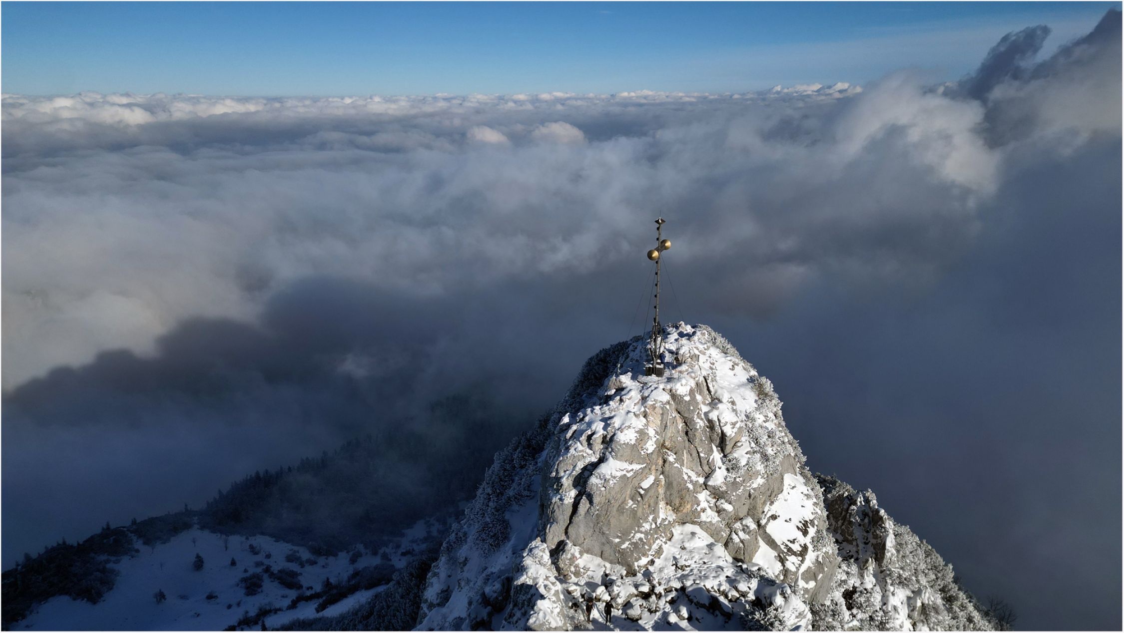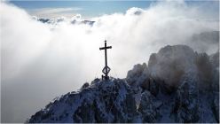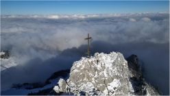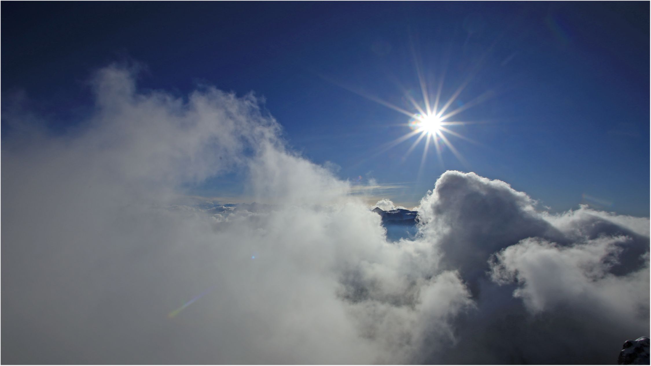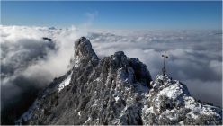 Auf dem Gipfel bisweilen Nebelschwaden mit Wind, dann recht frisch, in der Sonne allerdings mollig warm.