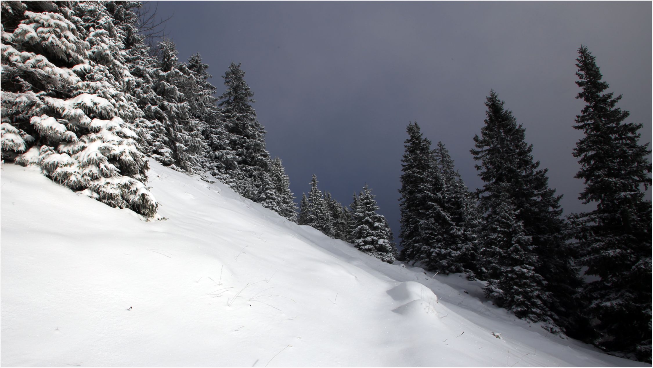 Die Forstwege sind, weil icm Wald ohnehin kaum schneebedeckt.