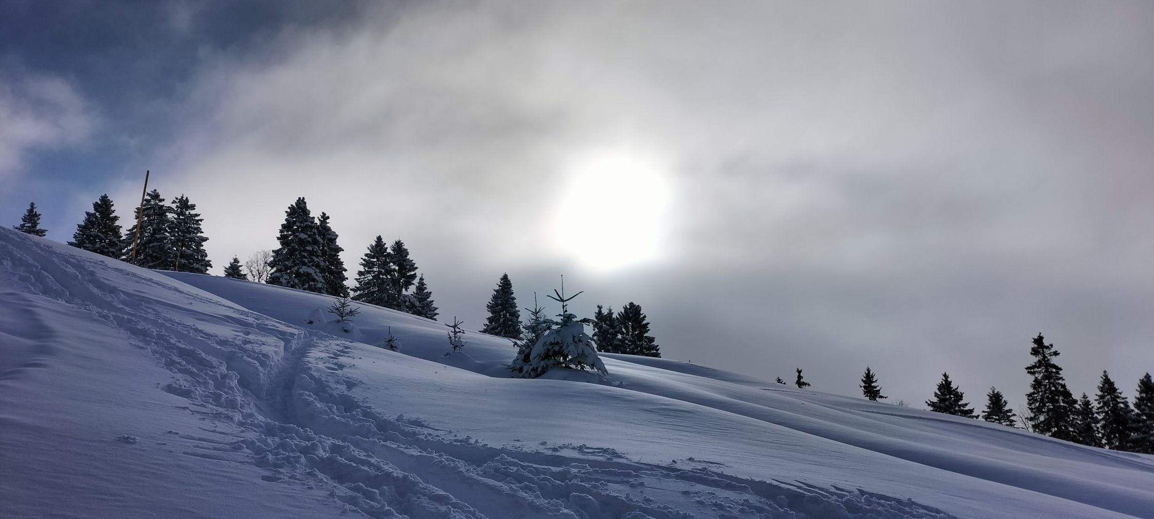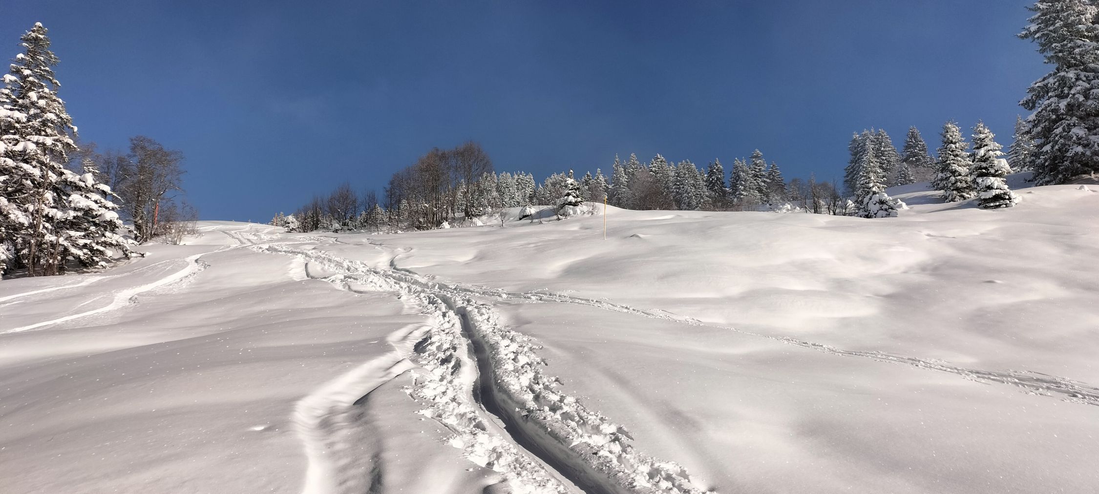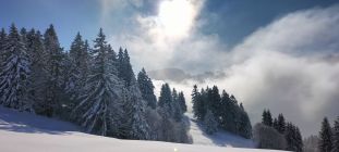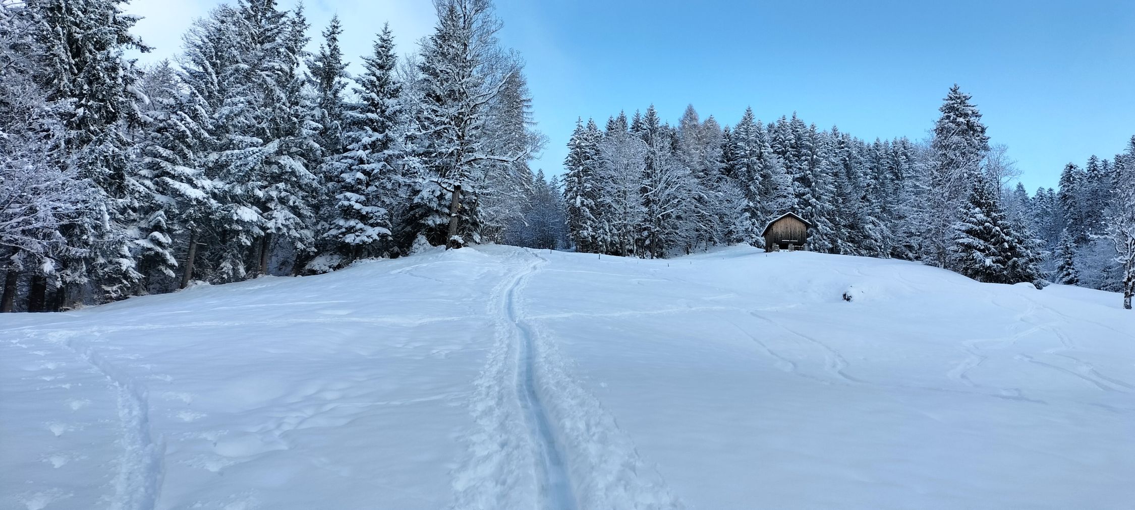 Start der Tour am 9.00 Uhr beim Dorf IIlgau, das Wetter heute schön, Pulverschnee auf der ganzen Route, die Schnneehöhe so 20-40 cm ohne Unterlage, bei der Abfahrt dann noch leichter Nebel auf.