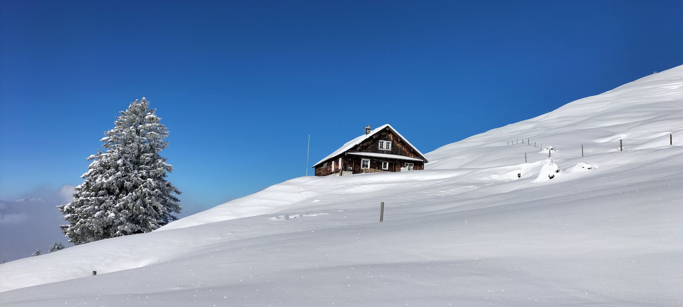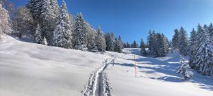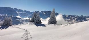 Laucherenstöckli (1753m): Von Illgau der Abfahrtspiste entlang bis Gipfel
