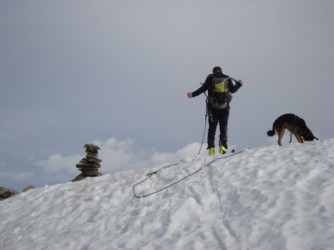 Die vorhergesagten Wetterprognosen waren heute stimmig, somit beschränkte sich unser Gipfelaufenthalt leider auf das Nötigste, denn die von NW heranziehenden dunklen Wolken mahnten zur Eile.