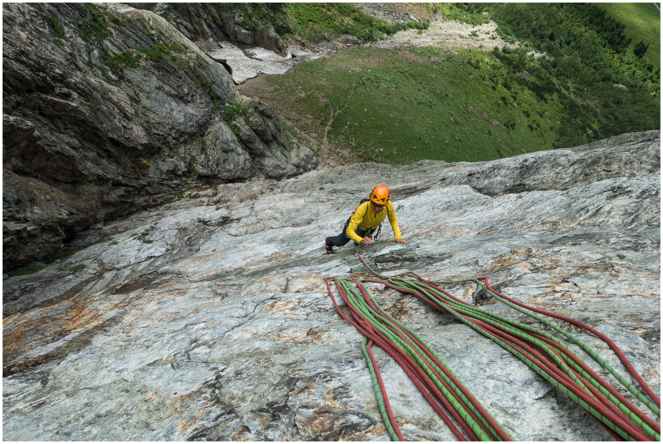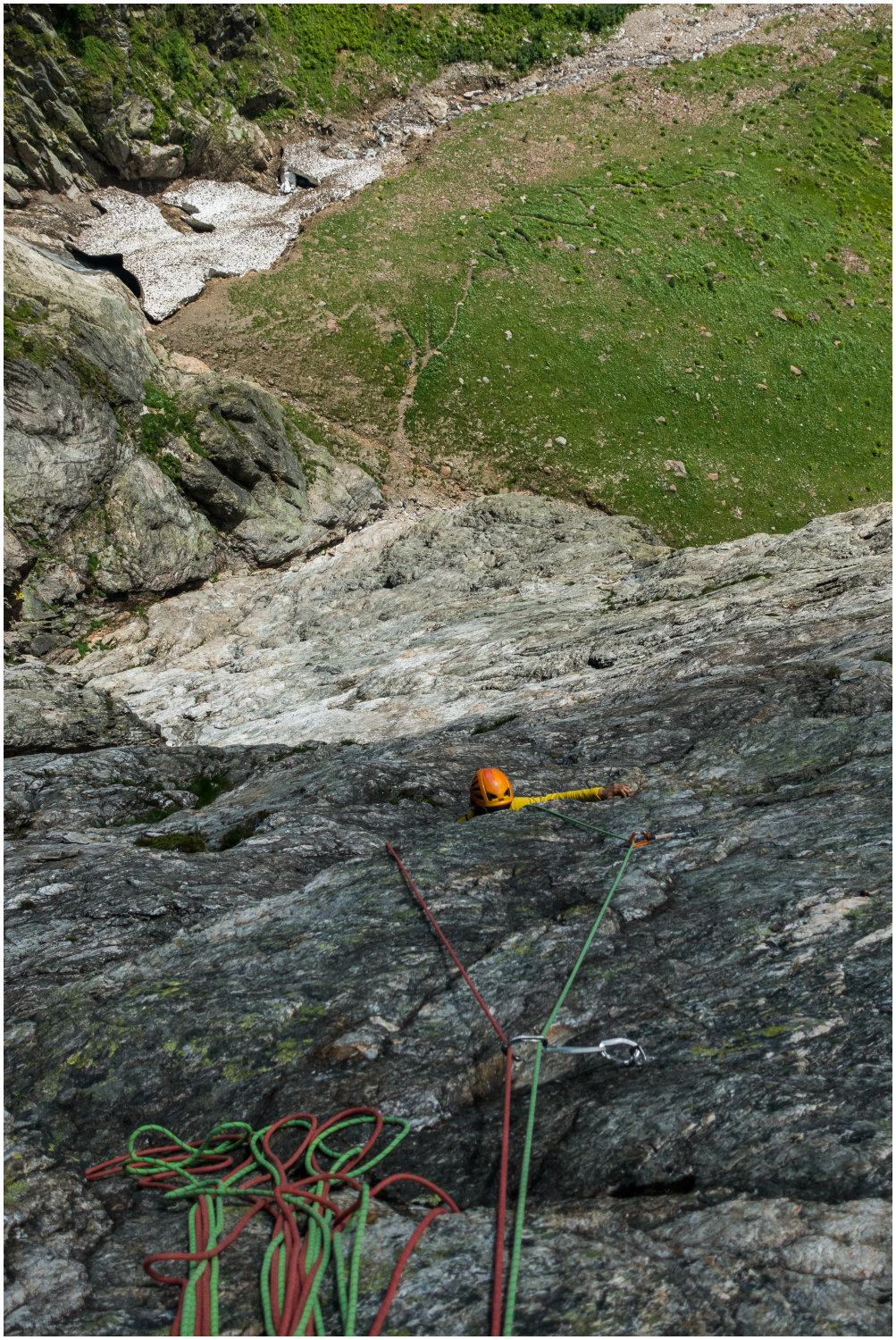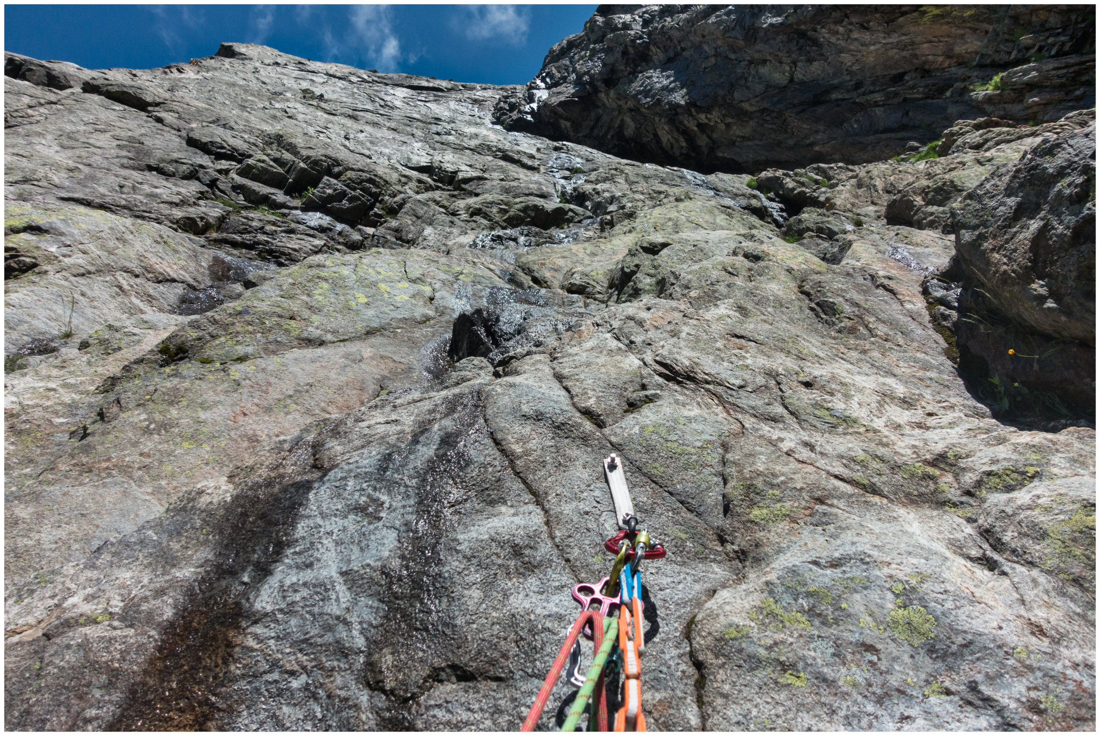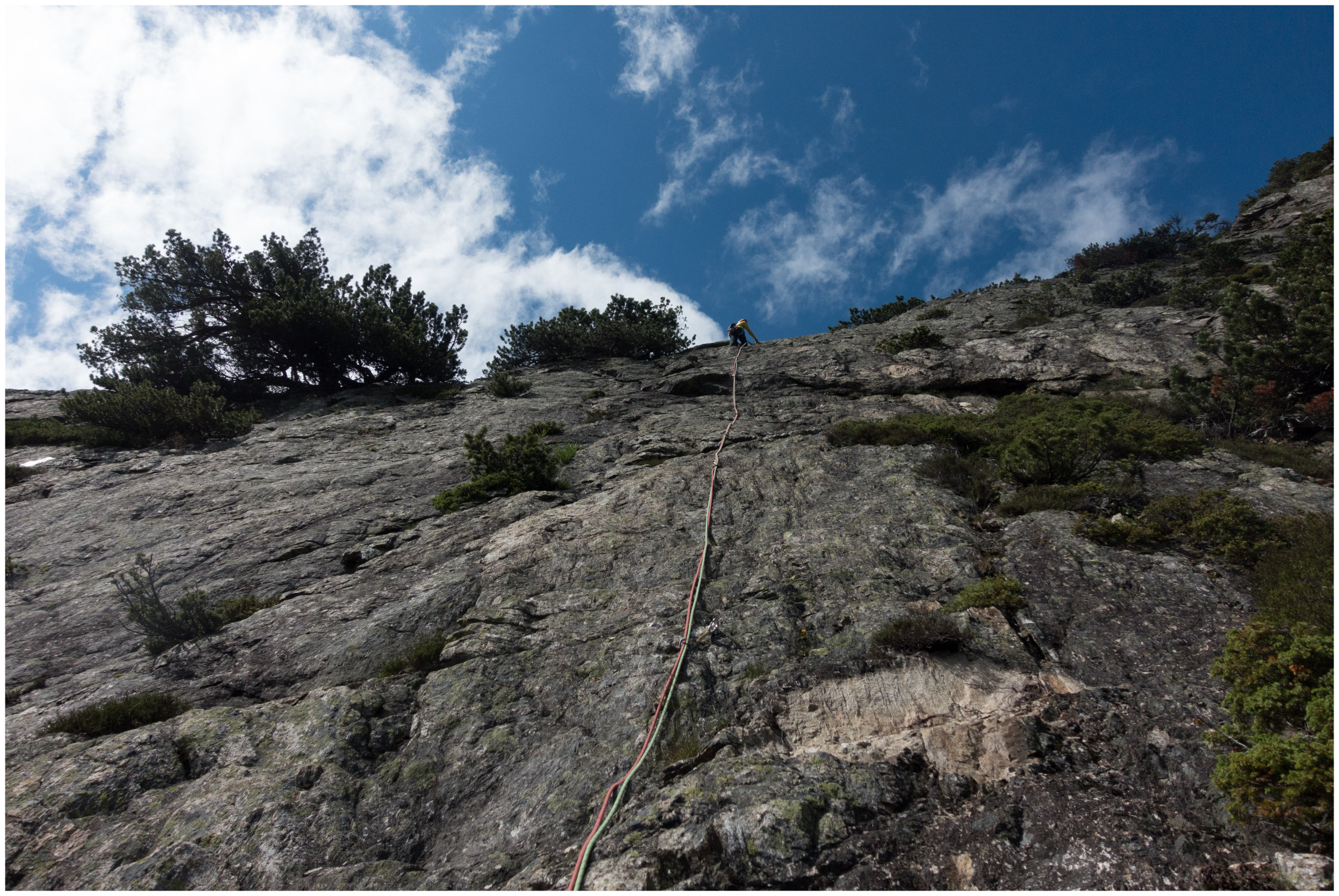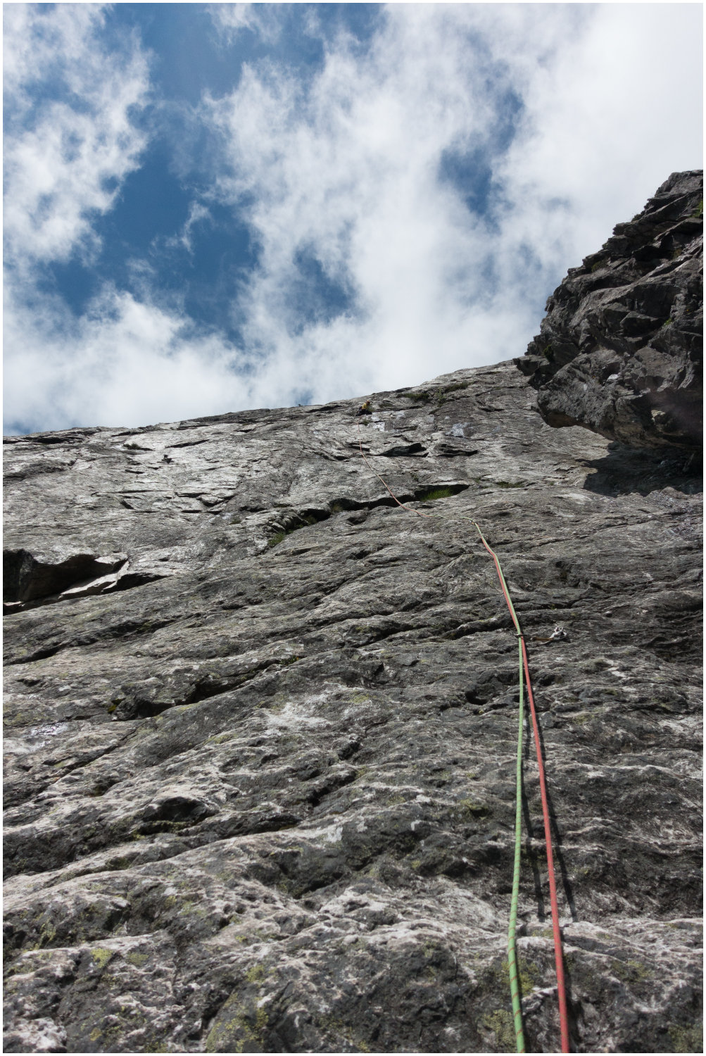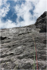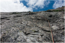 Insgesamt recht homogene Route - jedoch mit Vorsicht zu klettern, da doch noch der ein oder andere loose Stein (bzw. loose Schuppe in der Route steckt):