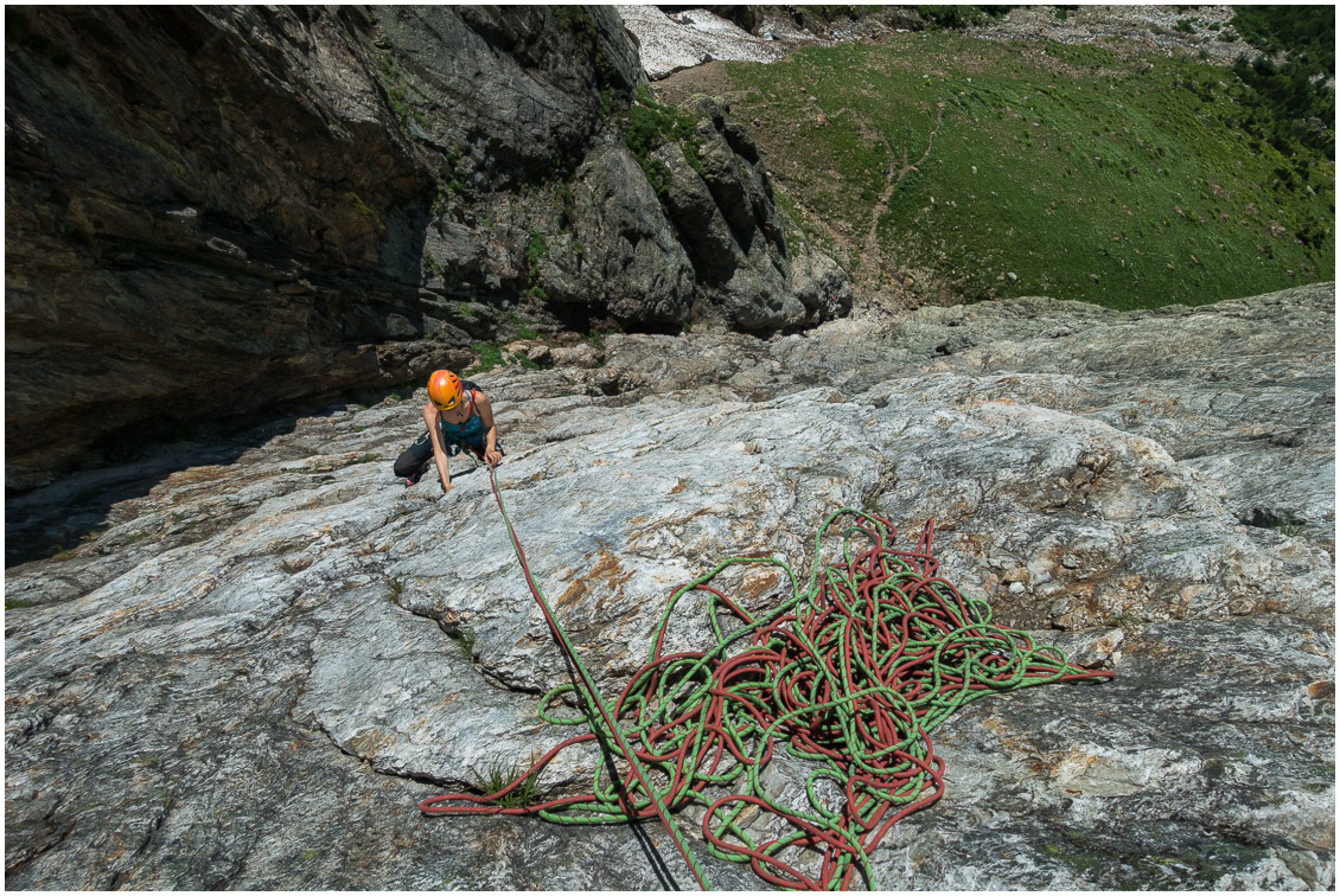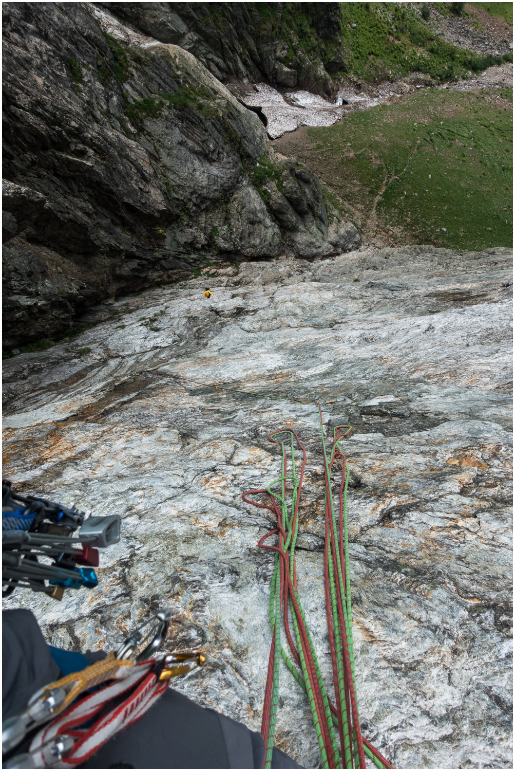 für die "tirage" Stelle (Zig zag - Seilzug in der 6. SL) nimmt man am besten 3-4 verlängerbare Expressen mit - damit kann man den Seilzug auf ein minimum reduzieren.