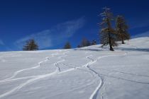 Und es hat noch ein bisschen Neuschnee gegeben, sodass die Verhältnisse gegenüber letztes Wochenende noch besser geworden sind. Bei der Abfahrt wieder fantastischer Pulver!