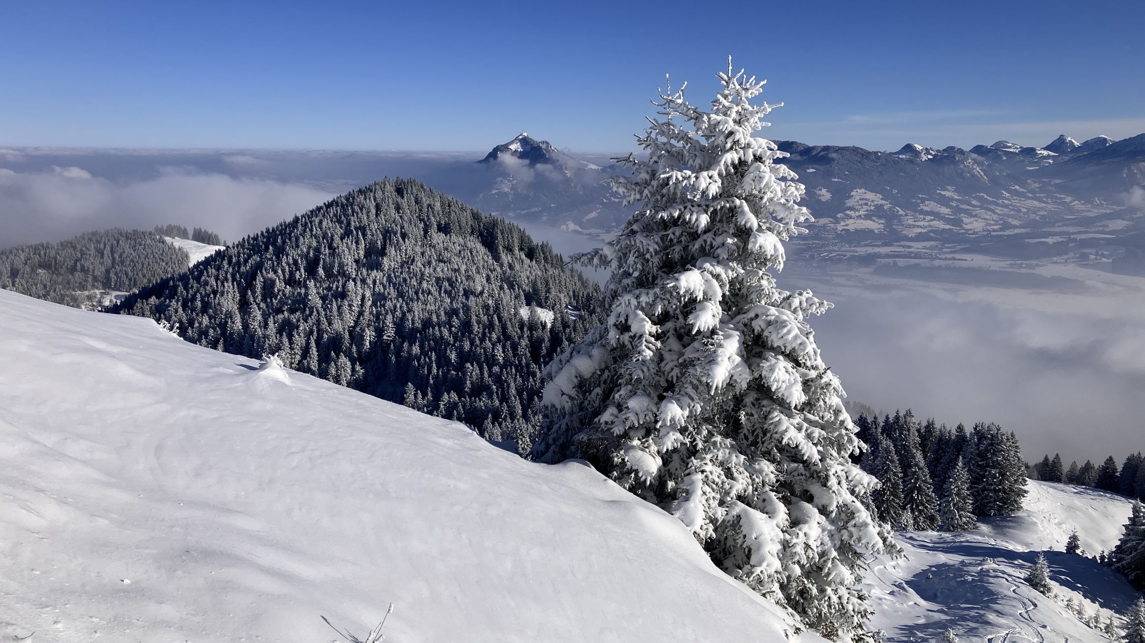 Start in Ofterschwang bei -10 Grad, für den Aufstieg genügend fluffiger Schnee. Gipfelosthang zweimal gefahren, man muss noch ein bisschen den Weg ums Gestrüpp rum suchen. Kein Feindkontakt. Weiter über Sigiswanger und Ofterschwanger Horn, dann durchs Skigebiet (noch außer Betrieb) zurück nach Ofterschwang. Schöne Sessionseröffnung bei bestem Wetter.
