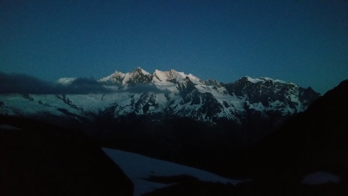 Montage scheinen ziemlich friedliche Tage in den Bergen zu sein. Die Weissmiesshütte war nur wegen einer JO überhaupt bis zur Hälfte gefüllt und auf's Lagginhorn zog es heute auch nur ein knappe Dutzend.