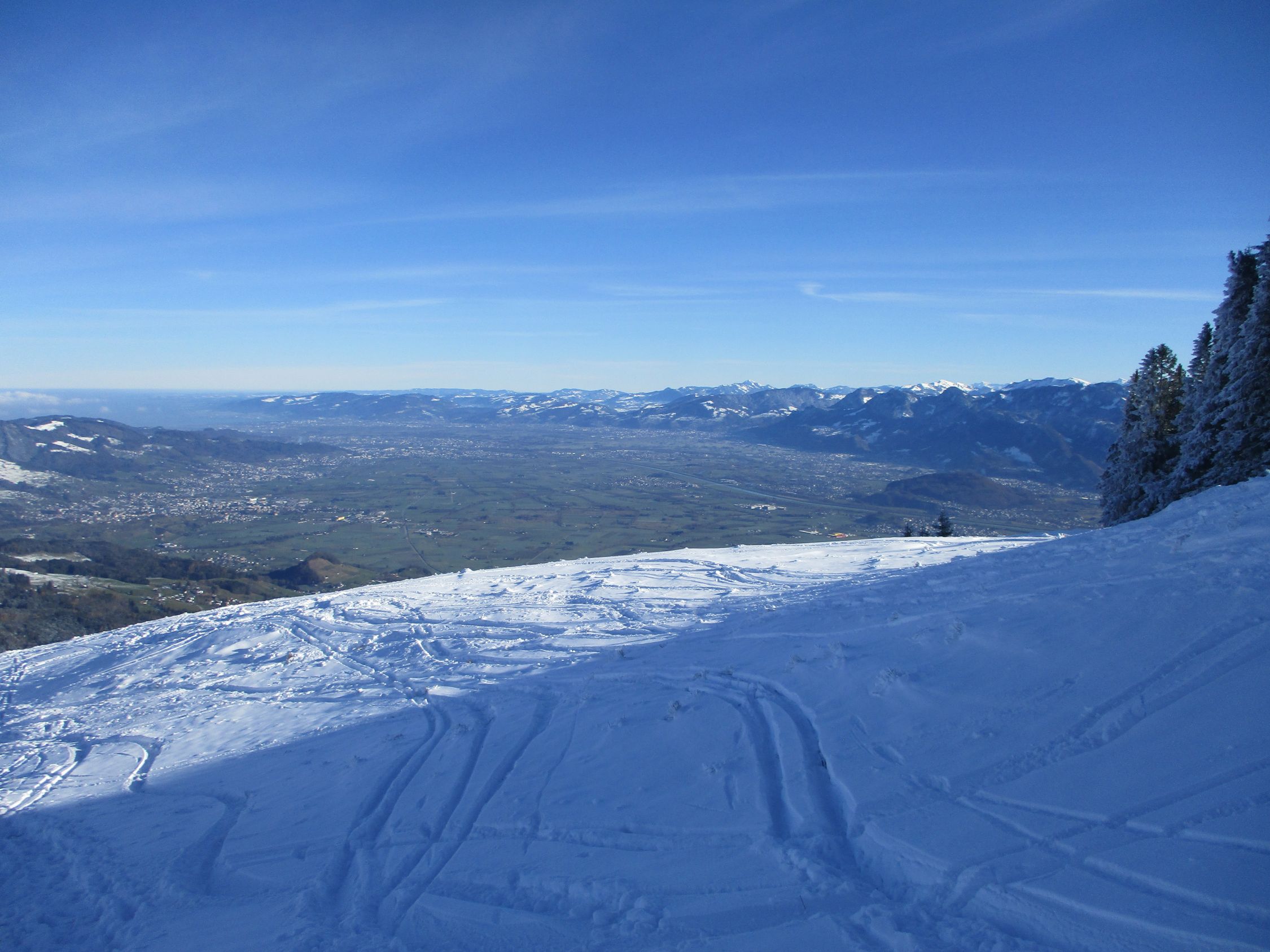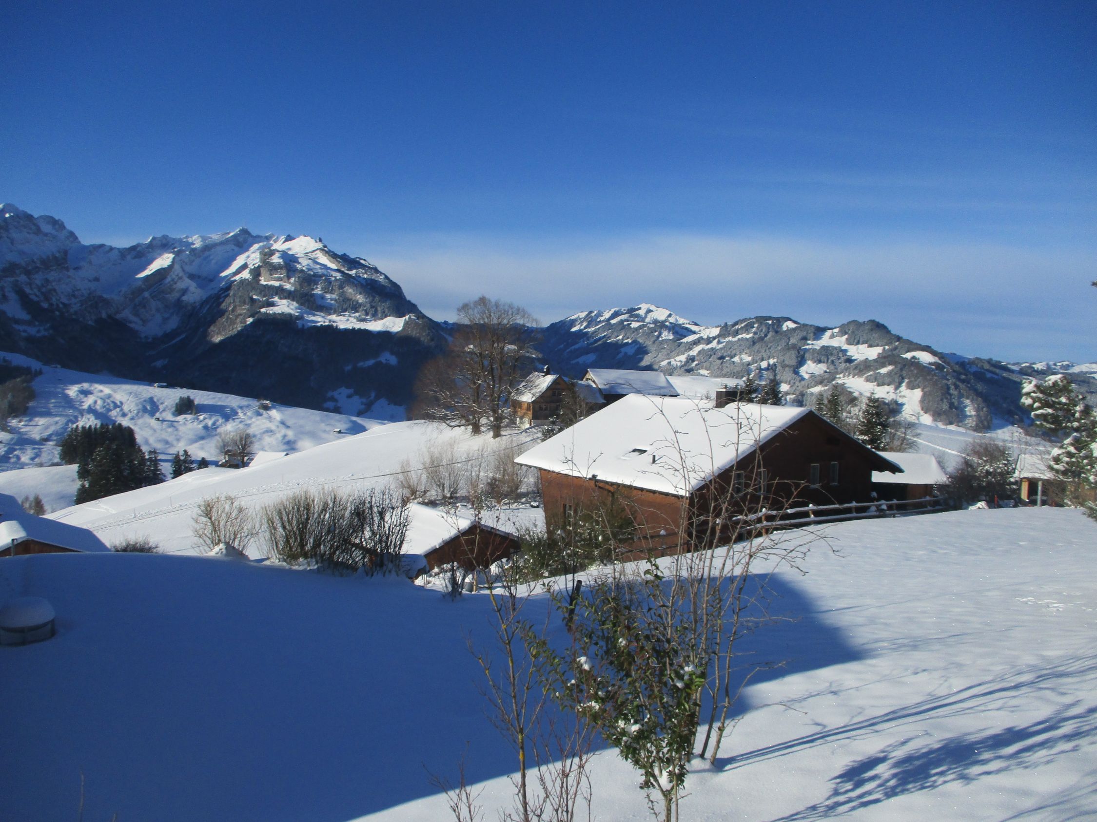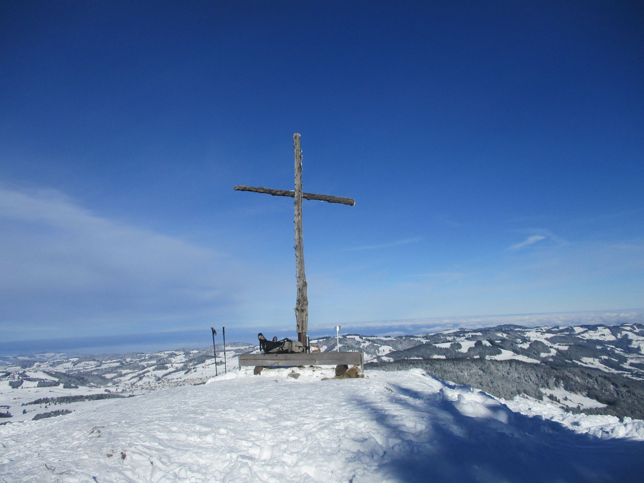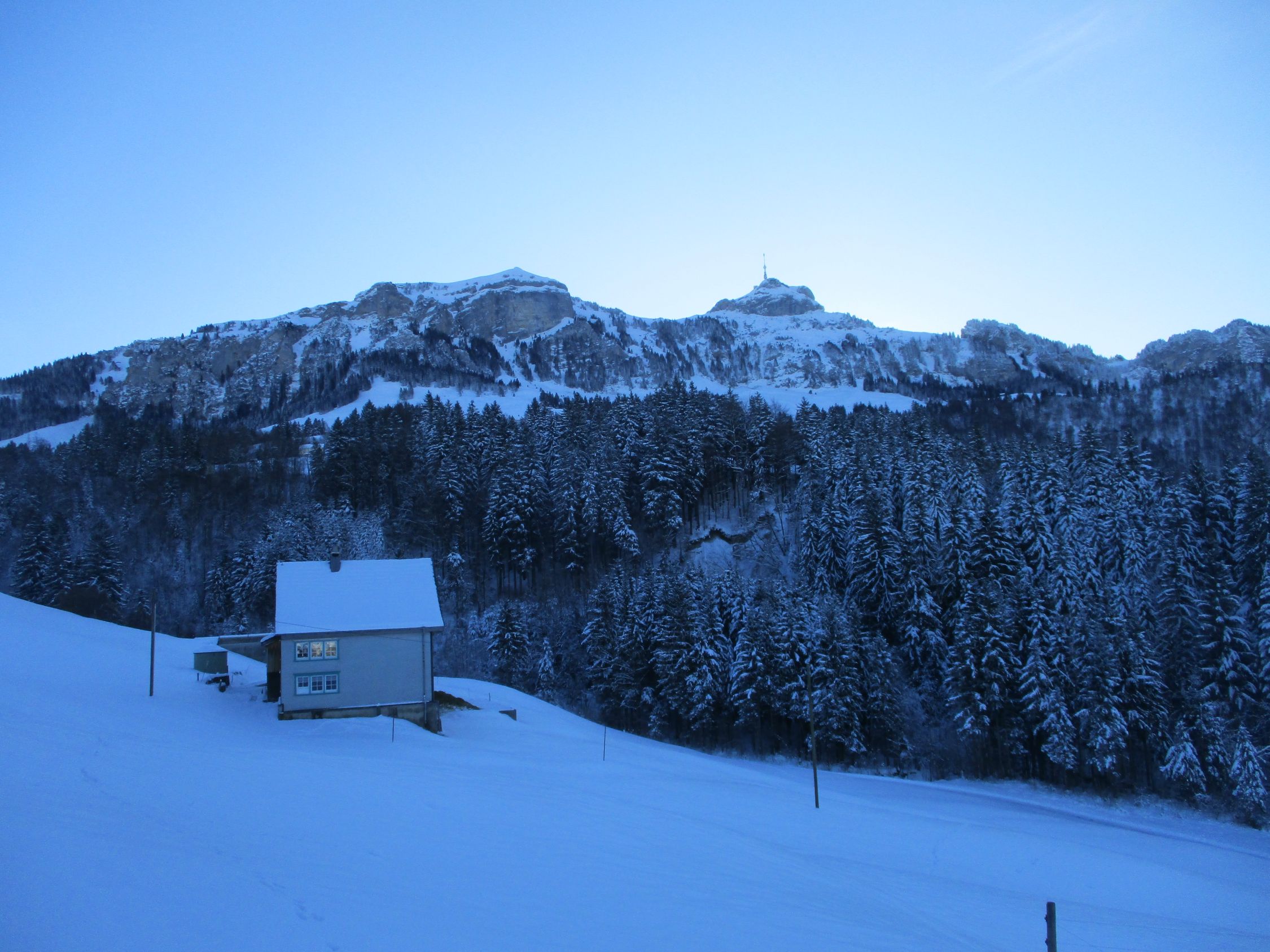 Ein herrlich sonniger Morgen. Ab ca. 11 h zogen die ersten Hochwolken rein, es blieb für die nächsten 2 h aber weiterhin überwiegend sonnig, Wettertechnisch war es im Vergleich mit gestern der bessere Tag hier im Appenzell. Mit der Schneeüppigkeit, wie gestern zwischen Kronberg und Schwägalp angetroffen, konnte diese Tour zwar nicht mithalten, dennoch waren heute auch einige Skifahrer auf der Route unterwegs.