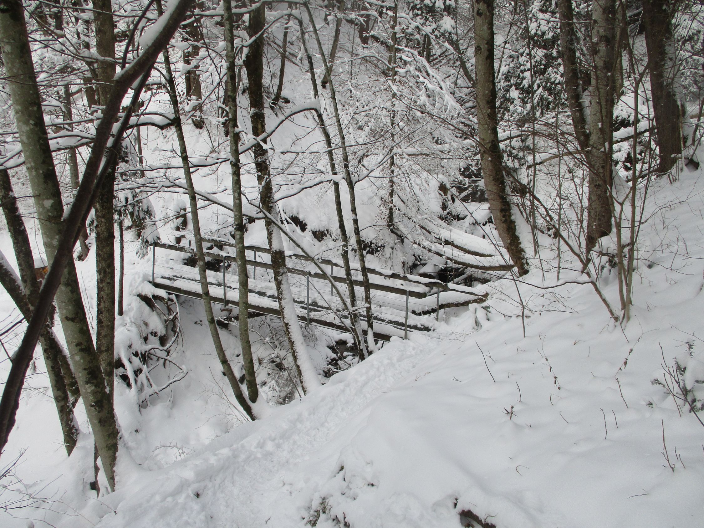 Ich habe den Gipfel überschritten und bin via dem S-Grat zum Resspass weitergegangen. Dort empfiehlt es sich, wegen der geringen Schneeauflage auf ruppigem Steinpfad die Schneeschuhe besser abzunehmen. Ab P.1285 Zapfen bin ich einer Spur gefolgt, welche mit einem in der Karte ersichtlichen, unmarkierten Pfad identisch war. Dieser verläuft orographisch rechts eines Tobels, und ab Mäder trifft man wieder auf einen markierten Weg. Über Hintere Waldschaft dann dem markierten Sommerpfad abwärts entlang des Horstbachs, und zurück nach Brülisau. Vom Gipfel bis Brülisau war ich etwa 2 h unterwegs.