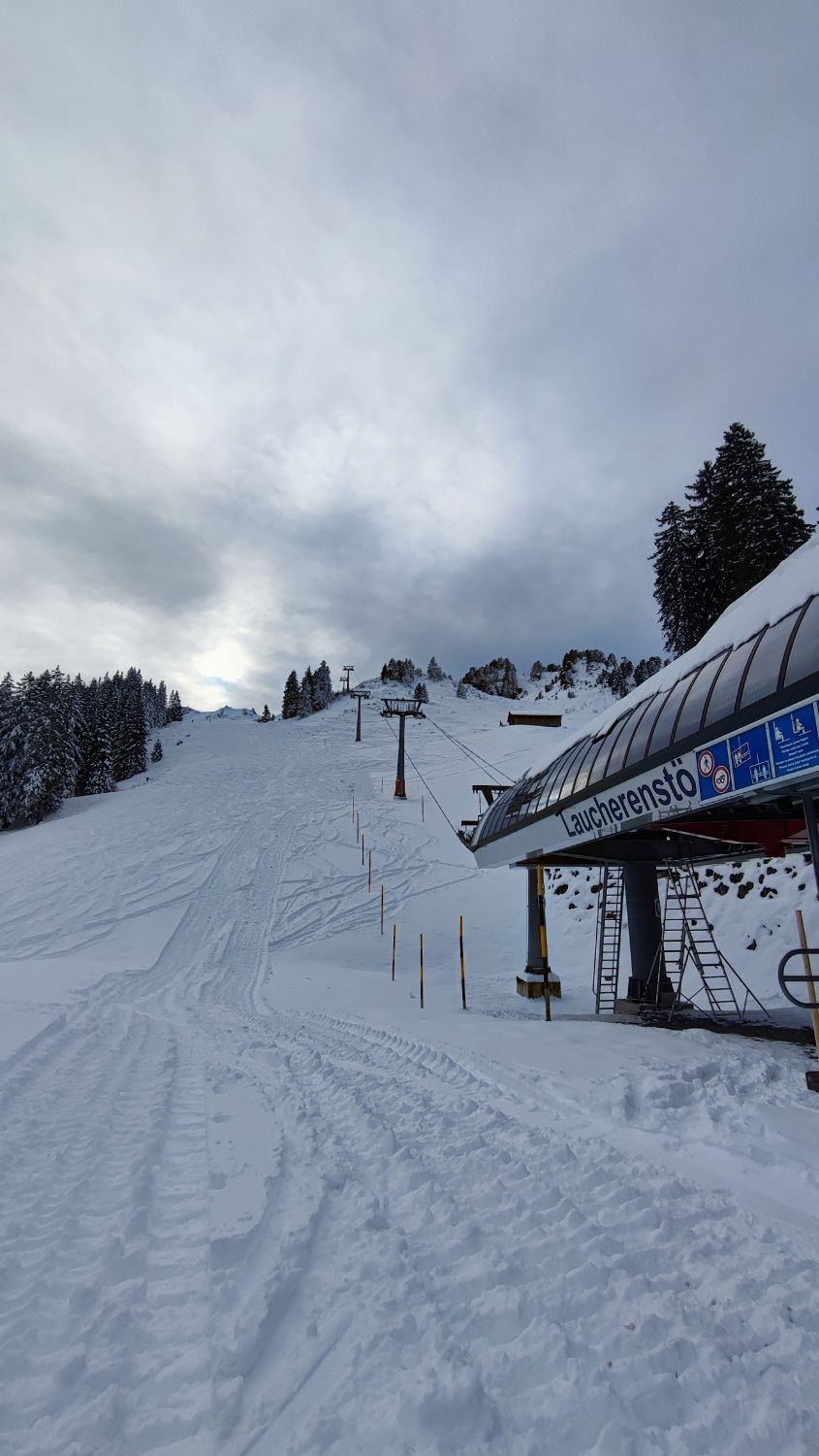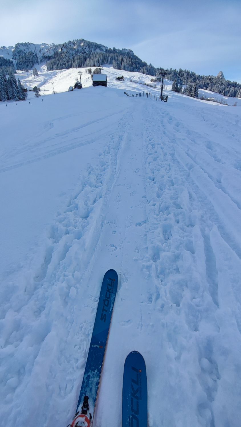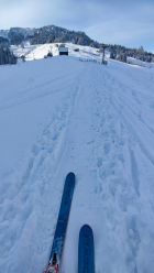 Heute 2x Laucherenstöckli, Aufstieg gut, Abfahrt defensiv der Piste entlang. Ohne Steinkontakt heute.