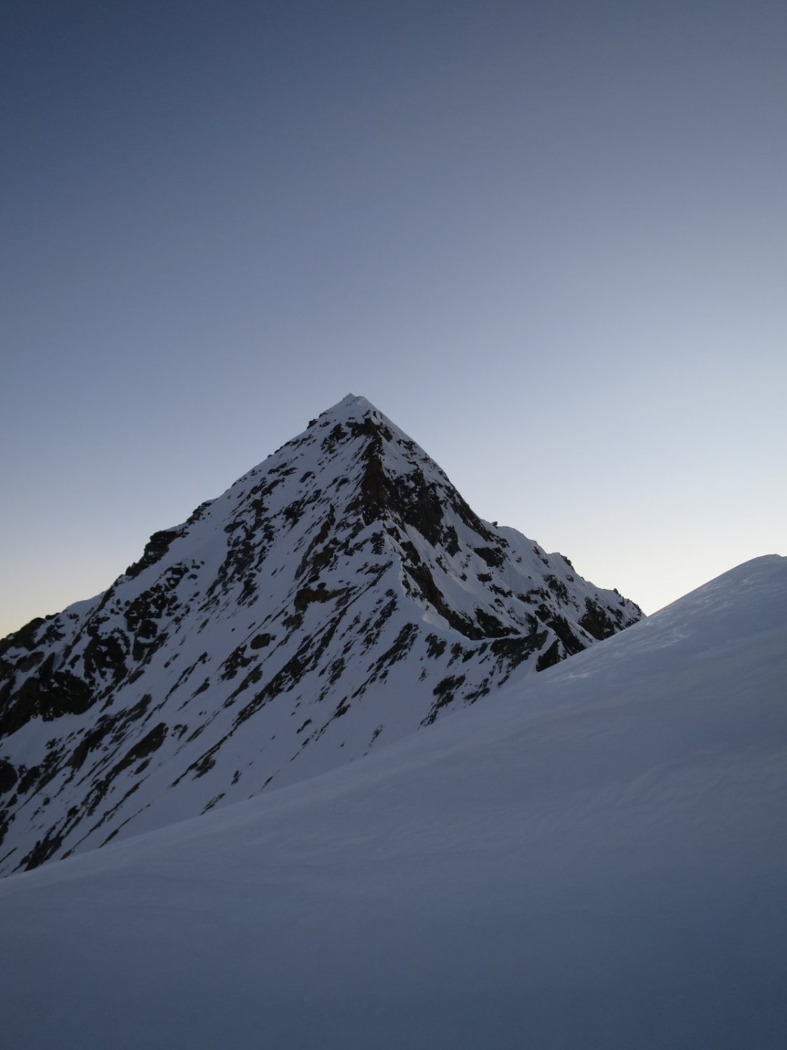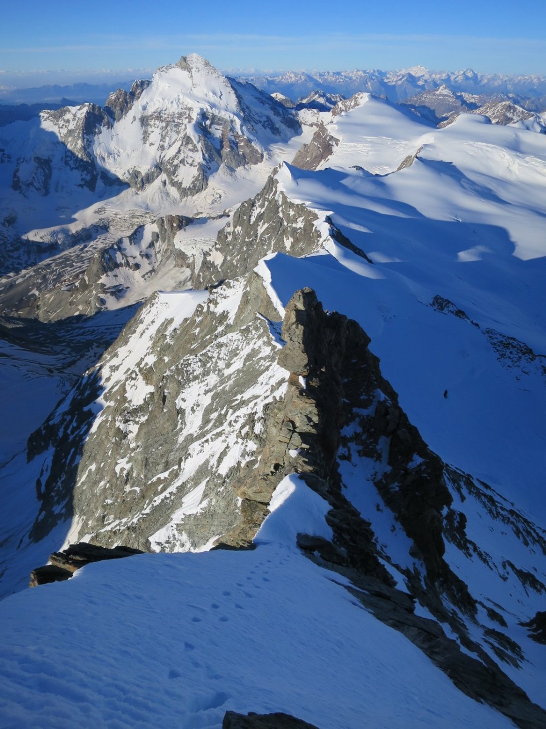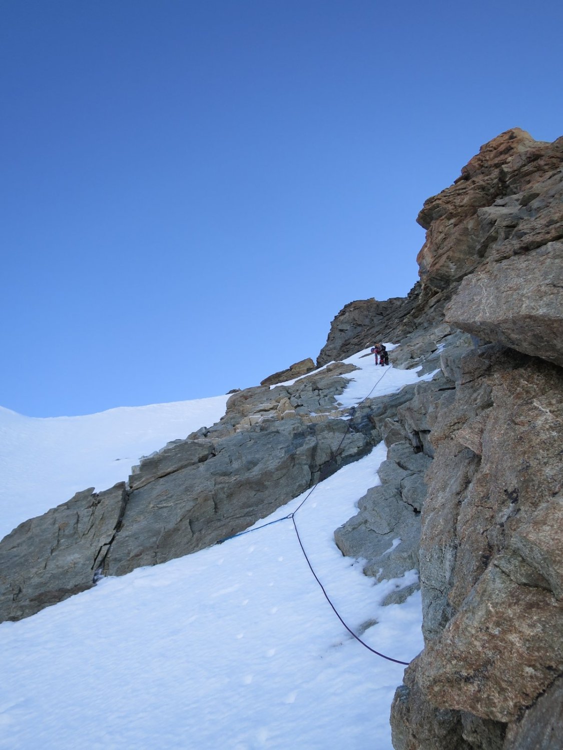 Felsanteil wird zu- und Schneeanteil abnehmen. Das bedeutet u.a., dass die Firnauflage im Couloir beim Grand Gendarm rasch abnimmt und dessen begehung heikler wird.