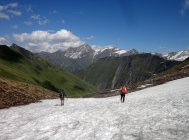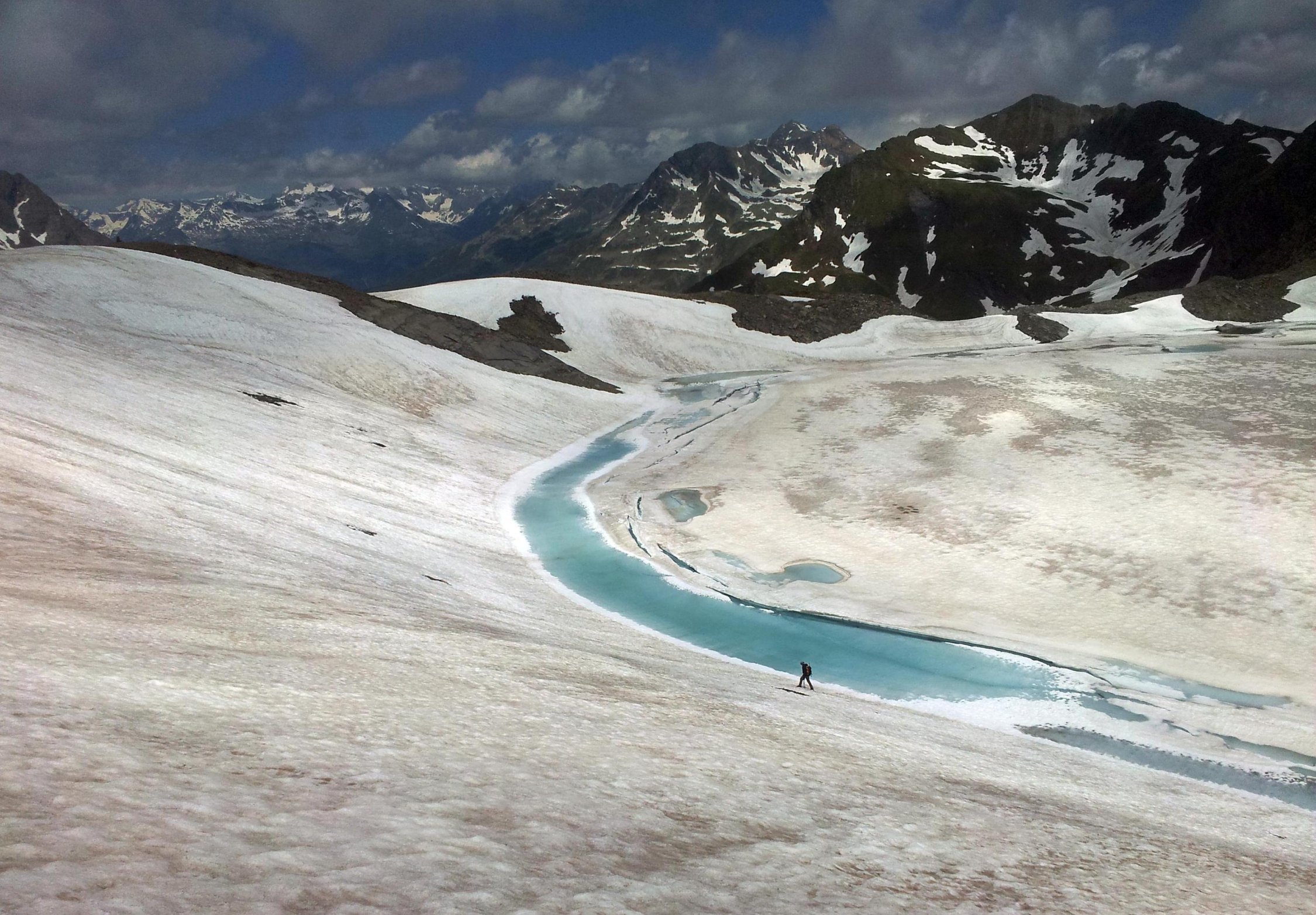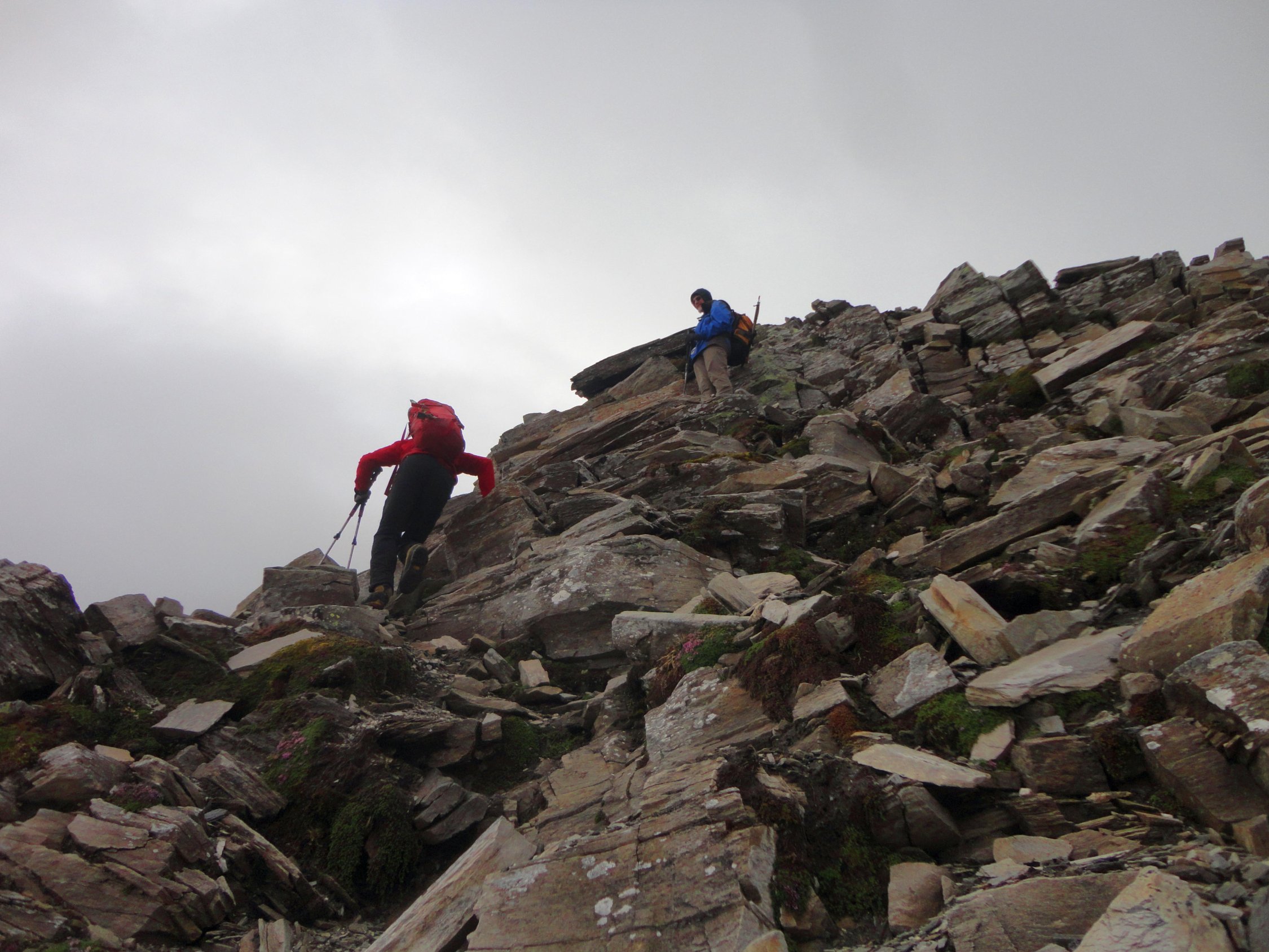 Der Terri-Westgrat oberhalb von P. 2.745 ist trocken und schneefrei und erfordert keinerlei Ausrüstung. Beim nordseitigen Abstieg empfiehlt es sich zur Zeit, den Bach im Val Canal ganz oben zu queren, wo noch dicke Schneebrücken vorhanden sind, da der Bach viel Wasser führt und an der mit Steinmännern markierten Stelle weiter unten ziemlich reissend ist.
