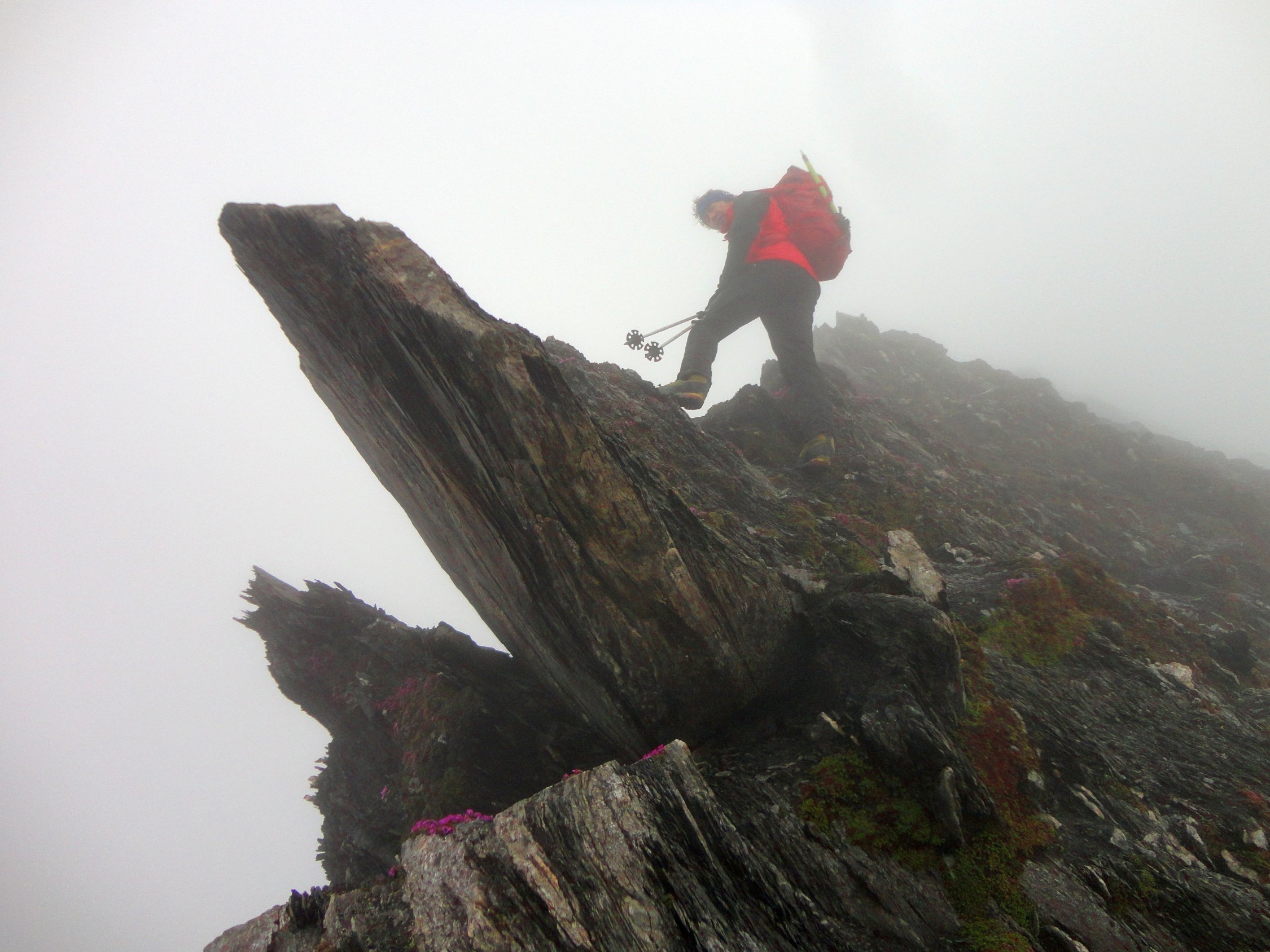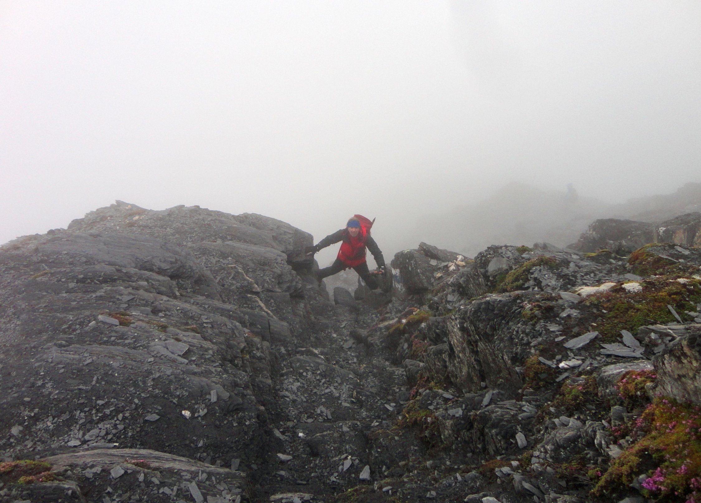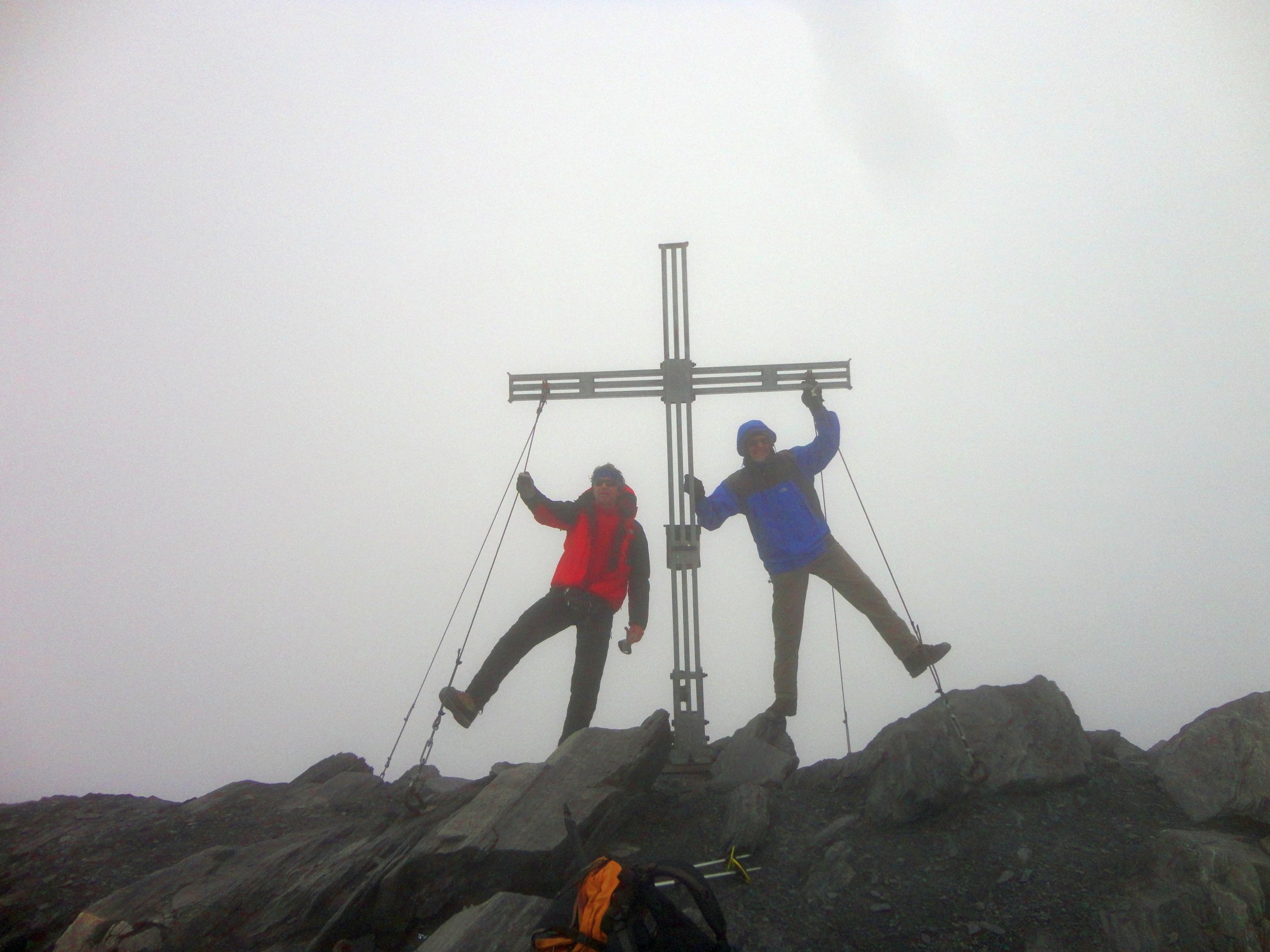 Im Grat- und Gipfelbereich leider Nebel, kalter Wind und null Sicht. Das angekündigte Zwischenhoch konnte sich nicht gegen die permanente feuchte Südanströmung durchsetzen und höhere Berge waren bis nachmittags in Wolken. Weiter unten im Laufe des Tages dann zunehmend sonnig und warm.