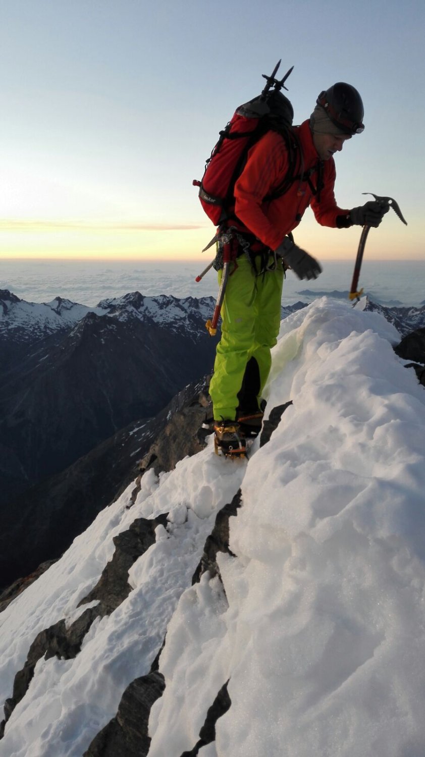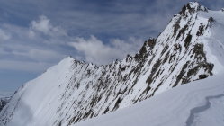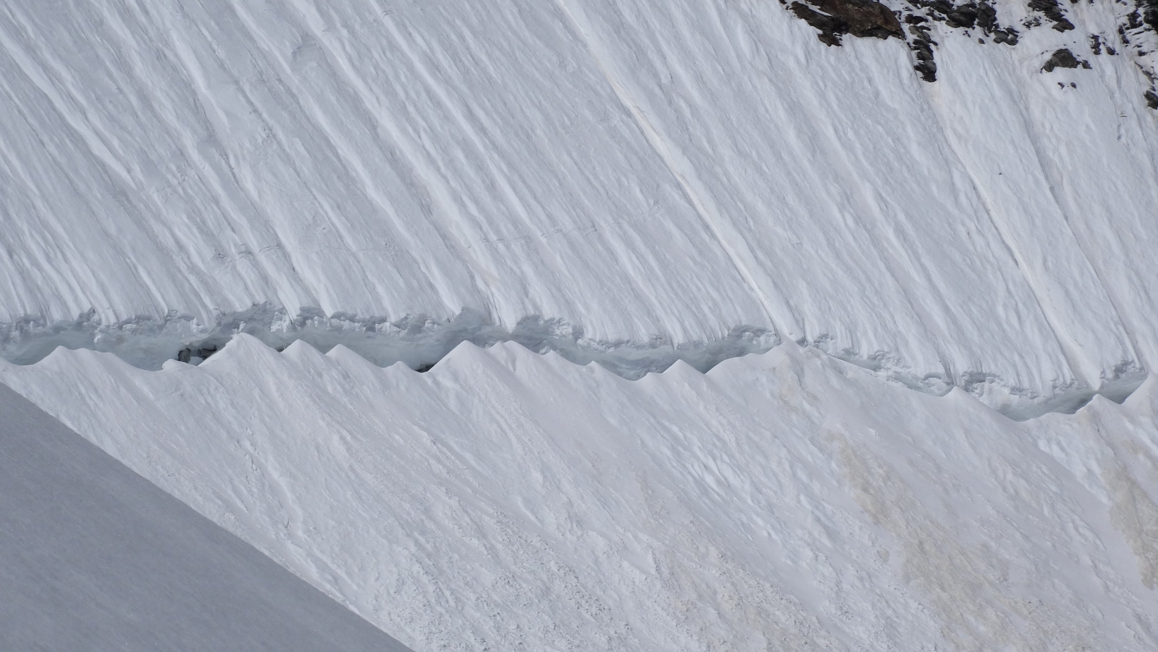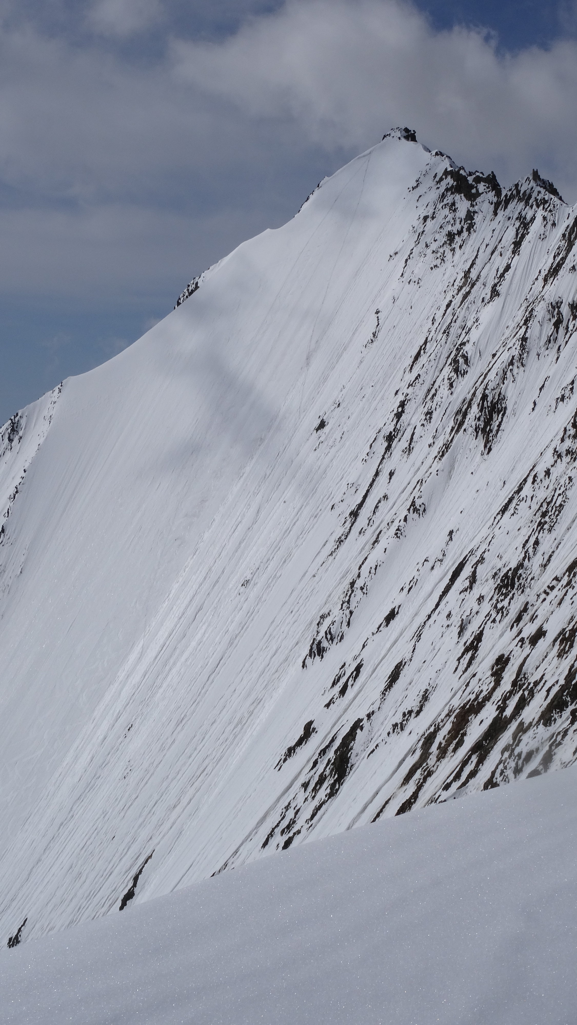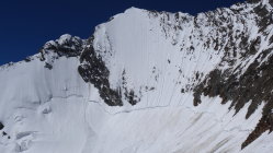 Der Bergschrund hat im Moment leicht zu übersteigen und die Wand selber ist noch ohne Blankeis bis zum Gipfel!