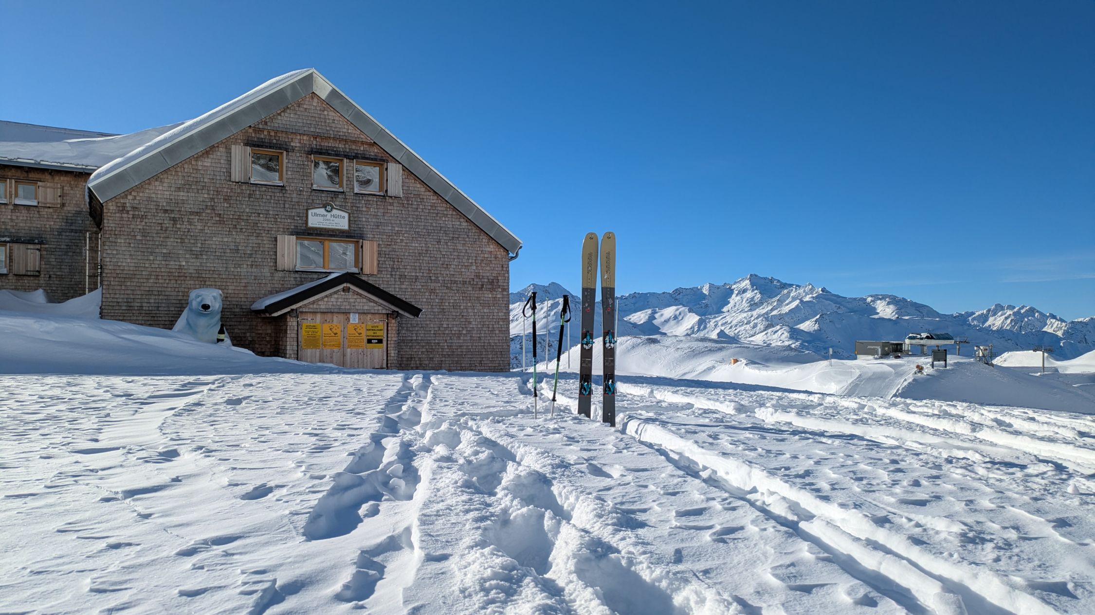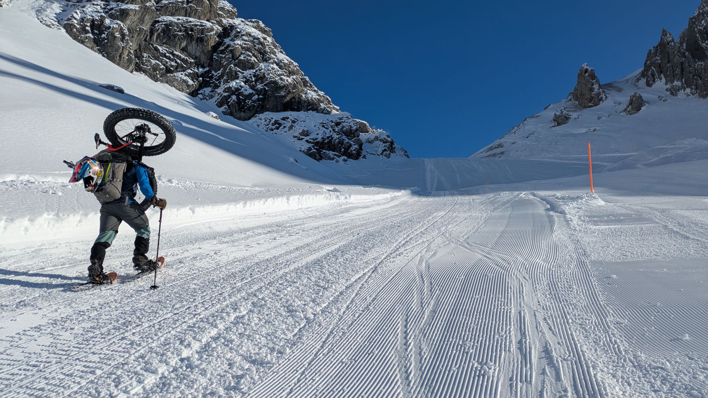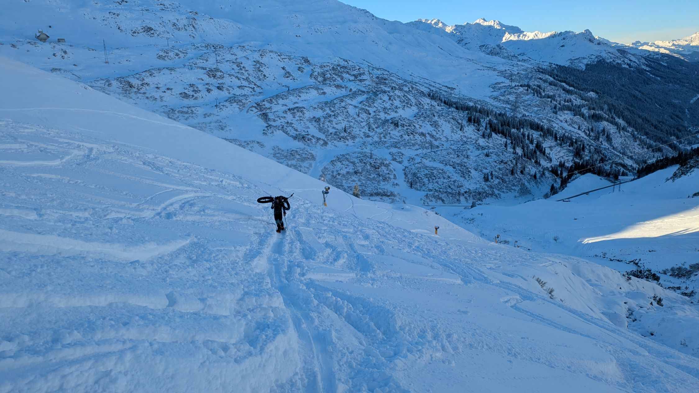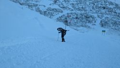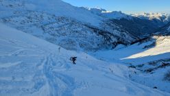 Während des Aufstiegs wurde die Piste präpariert. Dadurch gute Bedingungen bei der Abfahrt