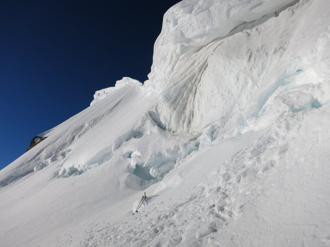 Absolute Topverhältnisse. Tragend gefroren und durchgehend Firn im Aufstieg. Aktuelle Route über den Bergschrund vor dem Rottalsattel noch machbar. Direktabstieg vom Rottalsattel ohne Abseilen mit guten Uebergängen über die grossen Spalten. Vor dem Mittag noch ohne Einsinken im leicht aufgesulzten Schnee direkt bis Jungfraujoch möglich.