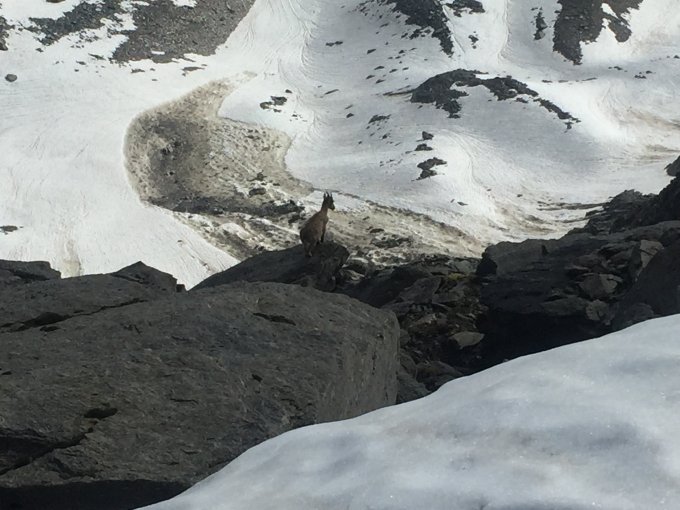 Das Wetter war nicht grad so super, wie vorhergesagt. Bewölkt mit wenigen Wolkenlücken, entsprechend wohl auch keine optimale Abstrahlung. Zuerst Fussmarsch über die Militärstrasse, wirklich praktisch, das Ding. Von unten weg wäre nichts mehr zu machen gewesen. Es hat noch gut Schnee grad von der Militärstrasse weg. Ich bin links der Moräne im Graben aufgestiegen, dort reicht der Schnee noch einige Zeit. Im Aufstieg bereits weich, auch auf dem Gletscher. Beim Skidepot traf ich einen anderen Skitürler zu einem kleinen Schwatz, zwei weitere Skitürler waren auf dem Tällistock, der auch noch genug Schnee hat. Vom Skidepot weg mit Steigeisen und Pickel die doch recht steile Flanke hoch und über den Gipfelgrat ohne Probleme zum höchsten Punkt. Genüssliche Gipfelrast in der Gesellschaft von zwei neugierigen Gemsen. Nach dem Abstieg zu den Ski kam die Abfahrt, und die war auf dem Gletscher nochmals sehr schön. Kein Firn, aber tragender und gut schwingbarer Nassschnee. Weiter unten dann tiefe Regenkacheln, kein Wunder nach dem Geschiffe im Juni. Ging aber ordentlich, da nicht gefroren. Zufrieden zurück zum Auto, ist halt einfach ein schöner Berg!