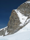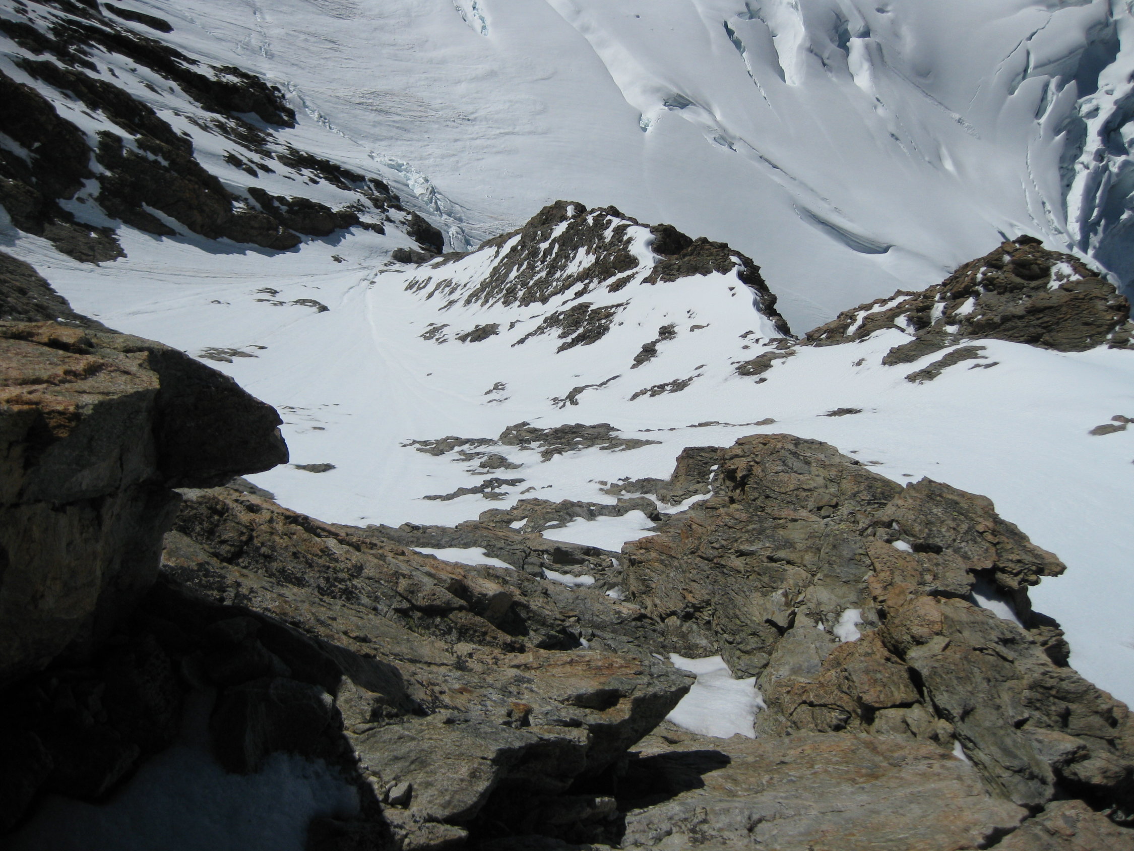 nach der Randkluft Schneerutsch über den Fels. Dürfte jetzt aber weg sein.